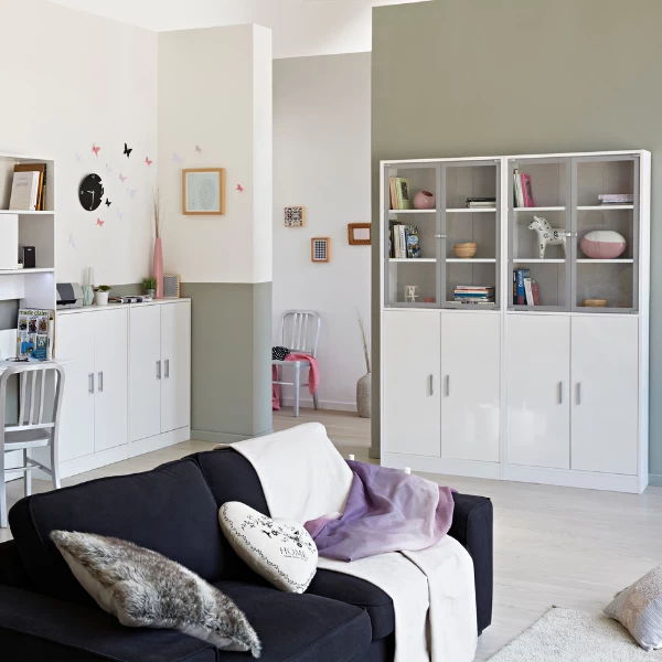 2 deuren voor de boekenkast Joséphine 75.2×1.5×91.4cm uit spaanplaat met afwerking in hoogglans wit.