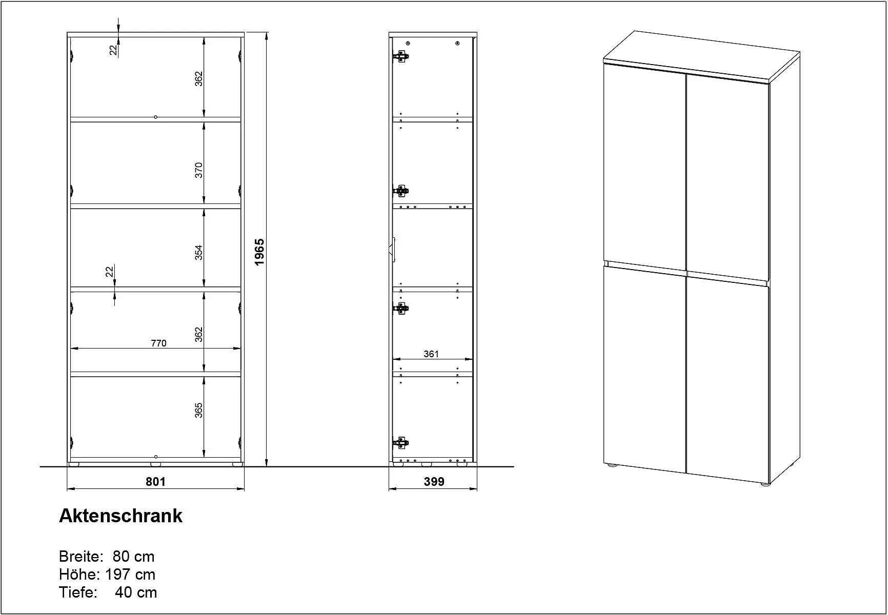 Archiefkast Miguel, gemaakt uit gemelamineerde spaanplaat. Met 2 deuren en 4 legplanken. 80x40x197 cm.