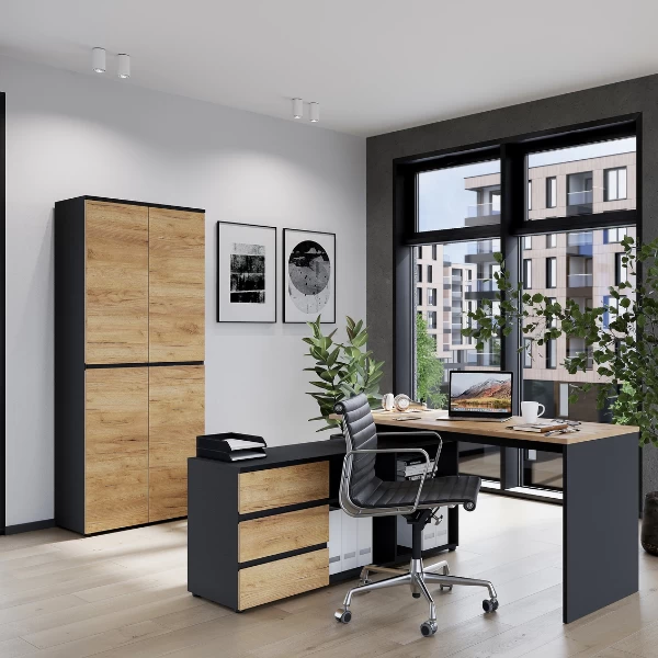 Archiefkast Miguel Met 2 Deuren En 4 Legplanken – Antraciet/eik