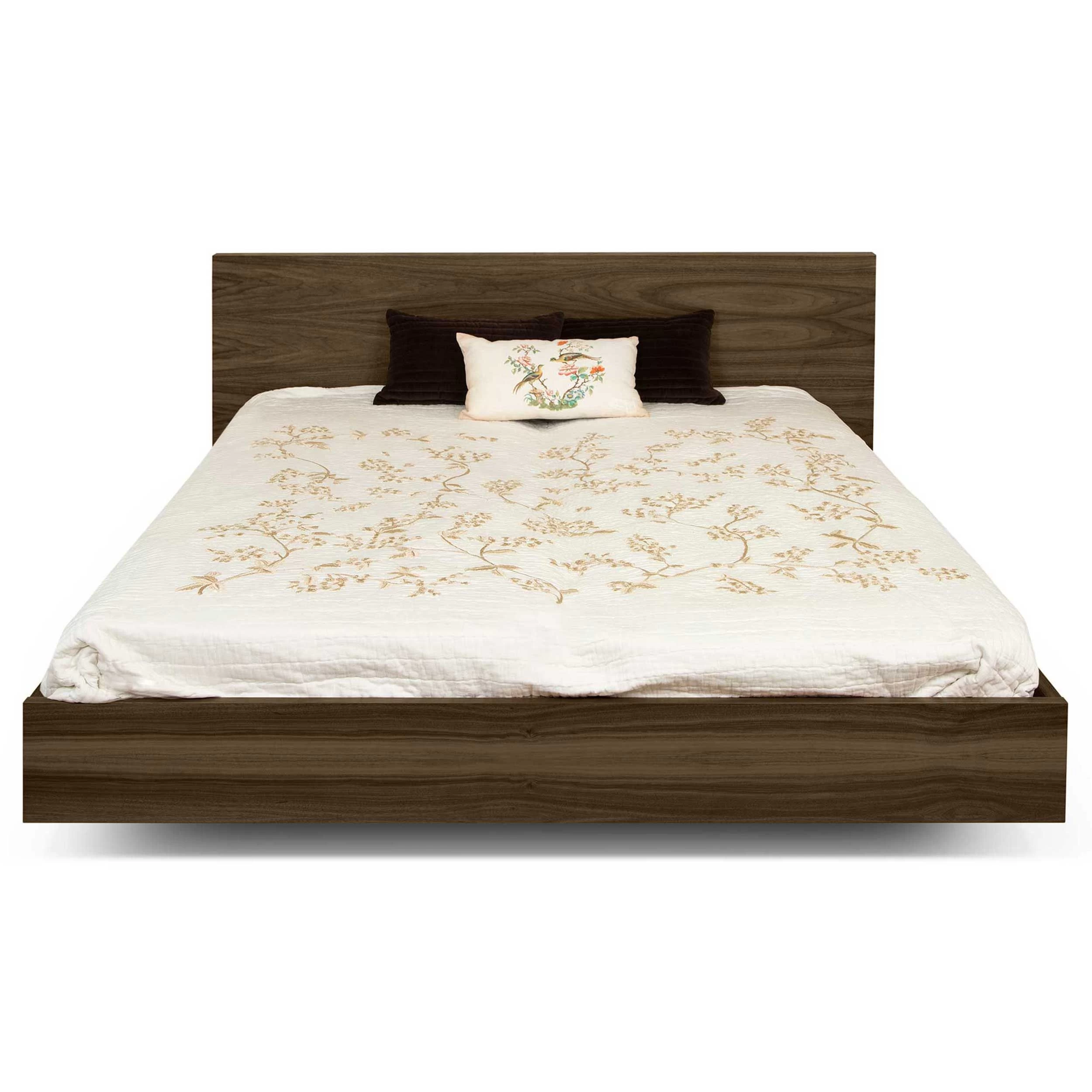 Bed Float is gemaakt van honingraatpaneel en is afgewerkt met een laagje walnootfineer. Een bijpassende matras van 180 x 200 cm kan je apart aankopen op onze site, net als 2 lattenbodems van 90 x 200 cm.