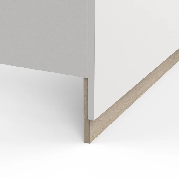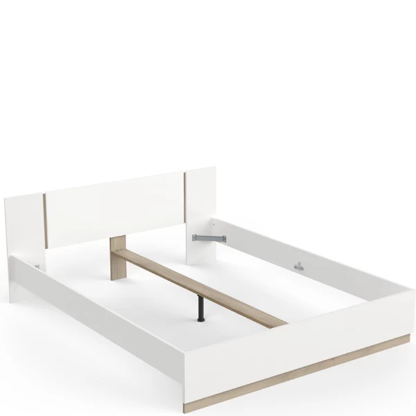 Bed Waylon is gemaakt uit gemelamineerde spaanplaat in mat wit en Kronberg eikdecor en heeft een verstevigingsbalk in het midden. De matras en bedbodem van 160 x 200 cm of de 2 matrassen en bedbodems van 80 x 200 cm zijn niet inbegrepen.