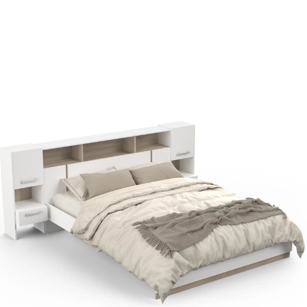 Dit bed in mat wit wordt extra in de verf gezet door zijn details in het zachte Kronberg eikdecor. Vindt de bijpassende matras en bedbodem van 160 x 200 cm of de 2 bedbodems en matrassen van 80 x 200 cm die het best aansluiten bij uw wensen. Voeg eventueel opbergruimte toe met hoofdbord Waylon die u eveneens op onze website kunt terugvinden.