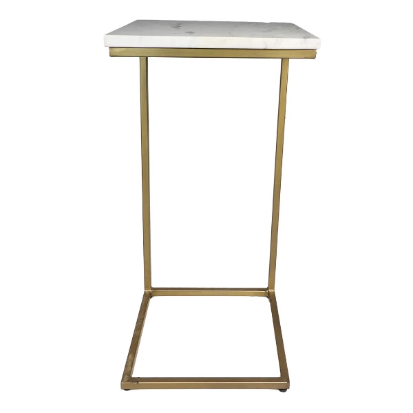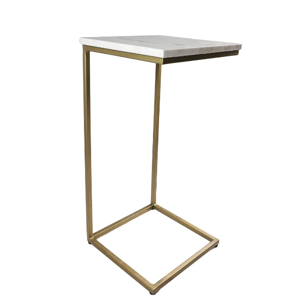 Bijzettafel Chandler 32x32x65cm uit goudkleurig metaal. Met een tafelblad in wit marmer.