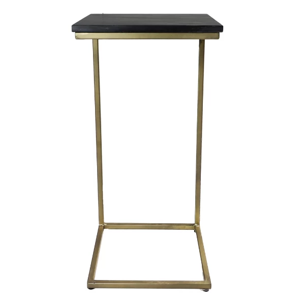 Bijzettafel Chandler 32x32x65cm uit goudkleurig metaal. Met een tafelblad in zwart marmer.Â