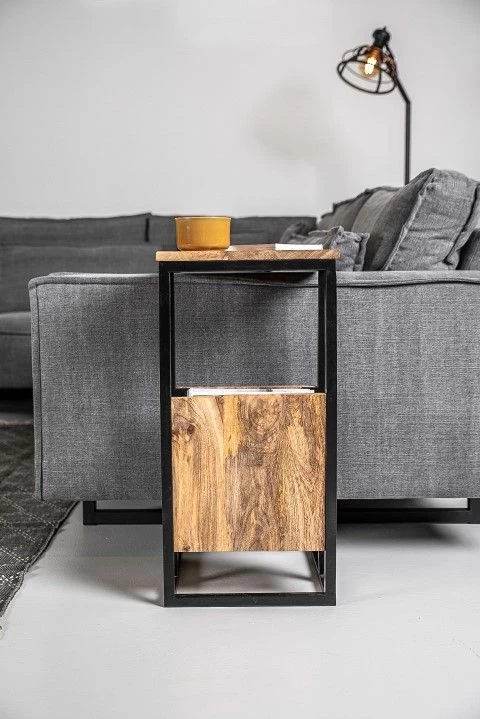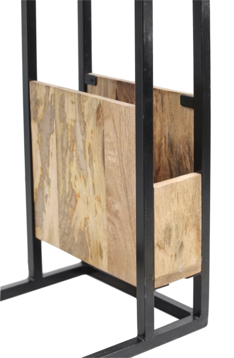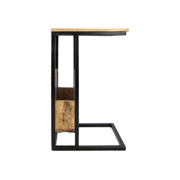 Bijzettafel Rick 68cm Met Magazinehouder – Mangohout/ijzer