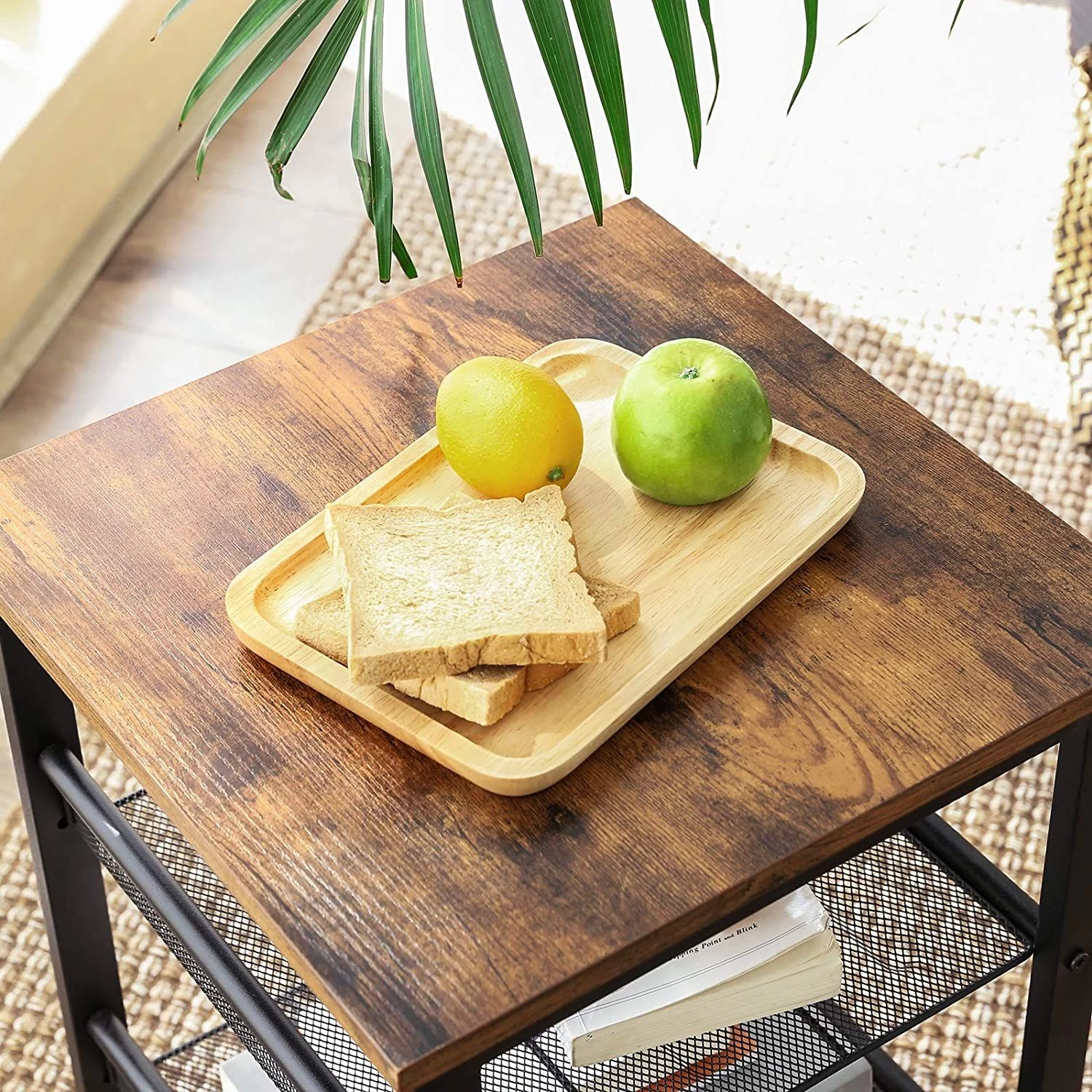 Bijzettafeltje Brad 40×40 2 Legplanken – Rustiek Bruin/zwart