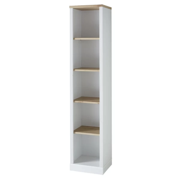 Boekenkast Samine 43x38x204cm met vier legplanken. Gemaakt uit spaanplaat in wit en eikdecor.Â
