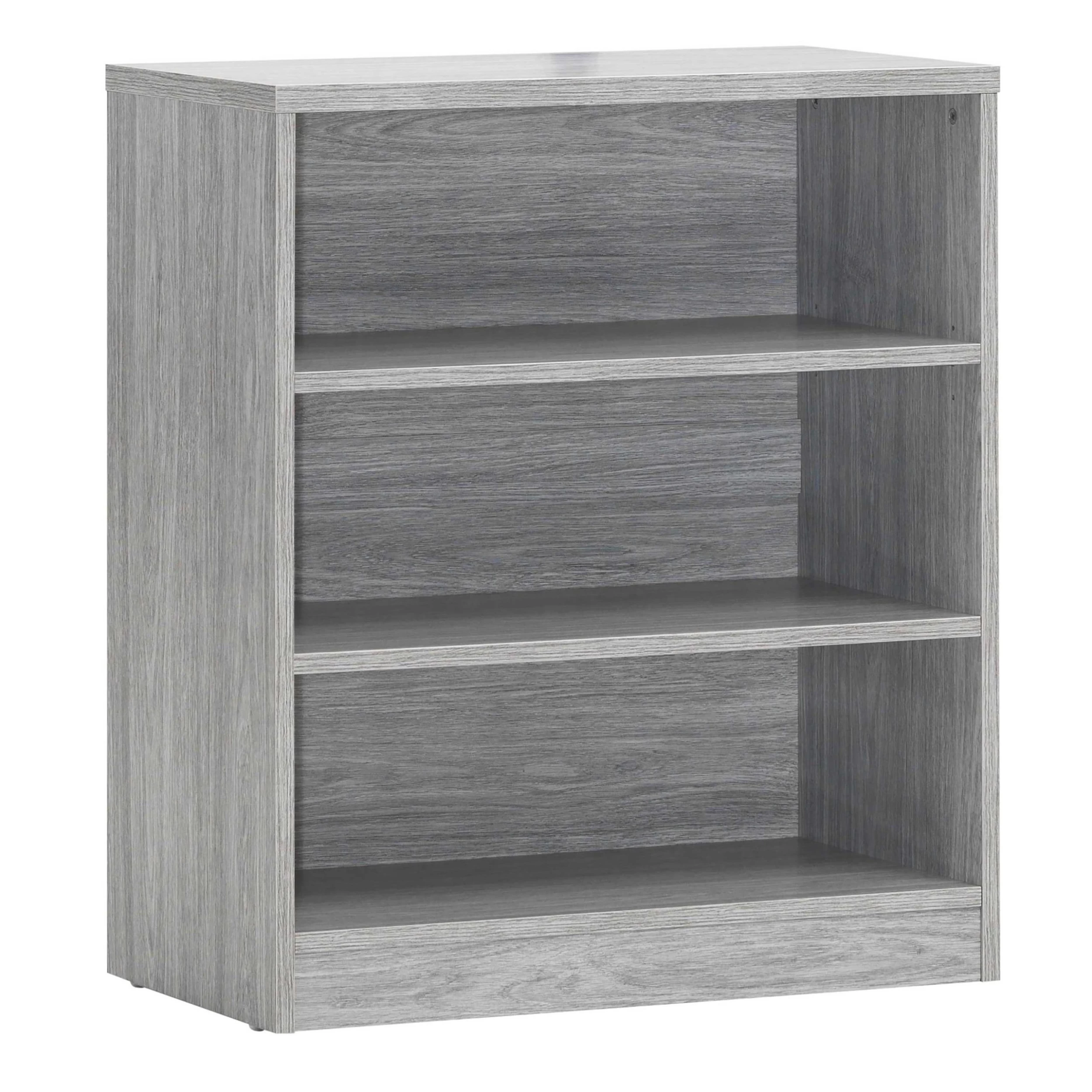 Organiseer jouw bureau of woonkamer met deze praktische boekenkast van de Spacio-collectie. De kast is gemaakt van spaanplaat met een decor van grijze eik en is uitgerust met 2 legplanken waarop je boeken of decoratie kan plaatsen.