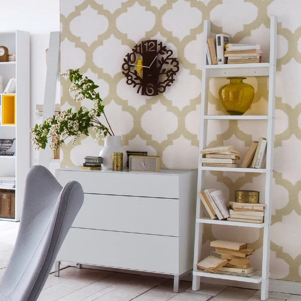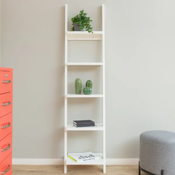 Laddervormig boekenrek Solvay geeft een speelse toets aan uw interieur. Het rek bestaat uit 5 legplanken waar u uw boeken en decoratie kunt uitstallen. De schroeven en pluggen om het rek tegen de muur te monteren zijn niet inbegrepen. Combineer eventueel met het langere boekenrek van Solvay om zo nog meer opbergruimte te creëren. Het rek is verkrijgbaar in meerdere kleuren. Bekijk onze website en kies het Solvay boekenrek die het beste past bij uw interieur!