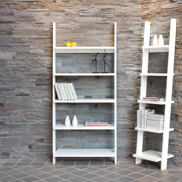 Laddervormig boekenrek Solvay geeft een speelse toets aan uw interieur. Het rek bestaat uit 5 legplanken waar u uw boeken en decoratie kunt uitstallen. De schroeven en pluggen om het rek tegen de muur te monteren zijn niet inbegrepen. Combineer eventueel met het kortere boekenrek van Solvay om zo nog meer opbergruimte te creëren. Het rek is verkrijgbaar in meerdere kleuren. Bekijk onze website en kies het Solvay boekenrek die het beste past bij uw interieur!