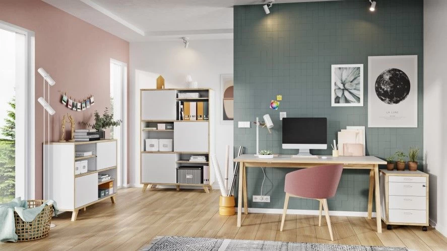 De witte Hercules-kantoorcollectie interpreteert de Scandinavische stijl op een moderne manier. Met de afmetingen 160 x 80 cm, beschikt het bureau over een ruim werkblad. Het Scandinavische design wordt nog extra in de verf gezet door de massief houten poten en frame. De oppervlaktes van het meubel zijn stevig en robuust door de ABS-randen en de coating in melaminehars. Ontdek ook de andere opbergmogelijkheden van de Hercules-collectie bij Emob.