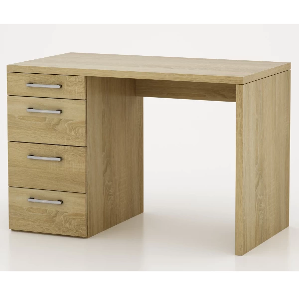 Bureau Morten 110x60x74cm uit spaanplaat met afwerking in melamine in eikdecor. Met vier opberglades.