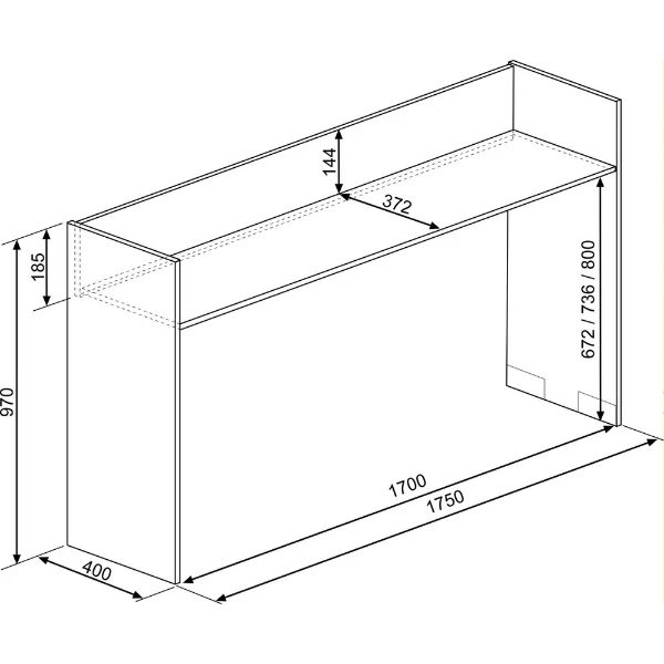Bureau Op Wielen Portia 175x40x97 – Eik/antraciet