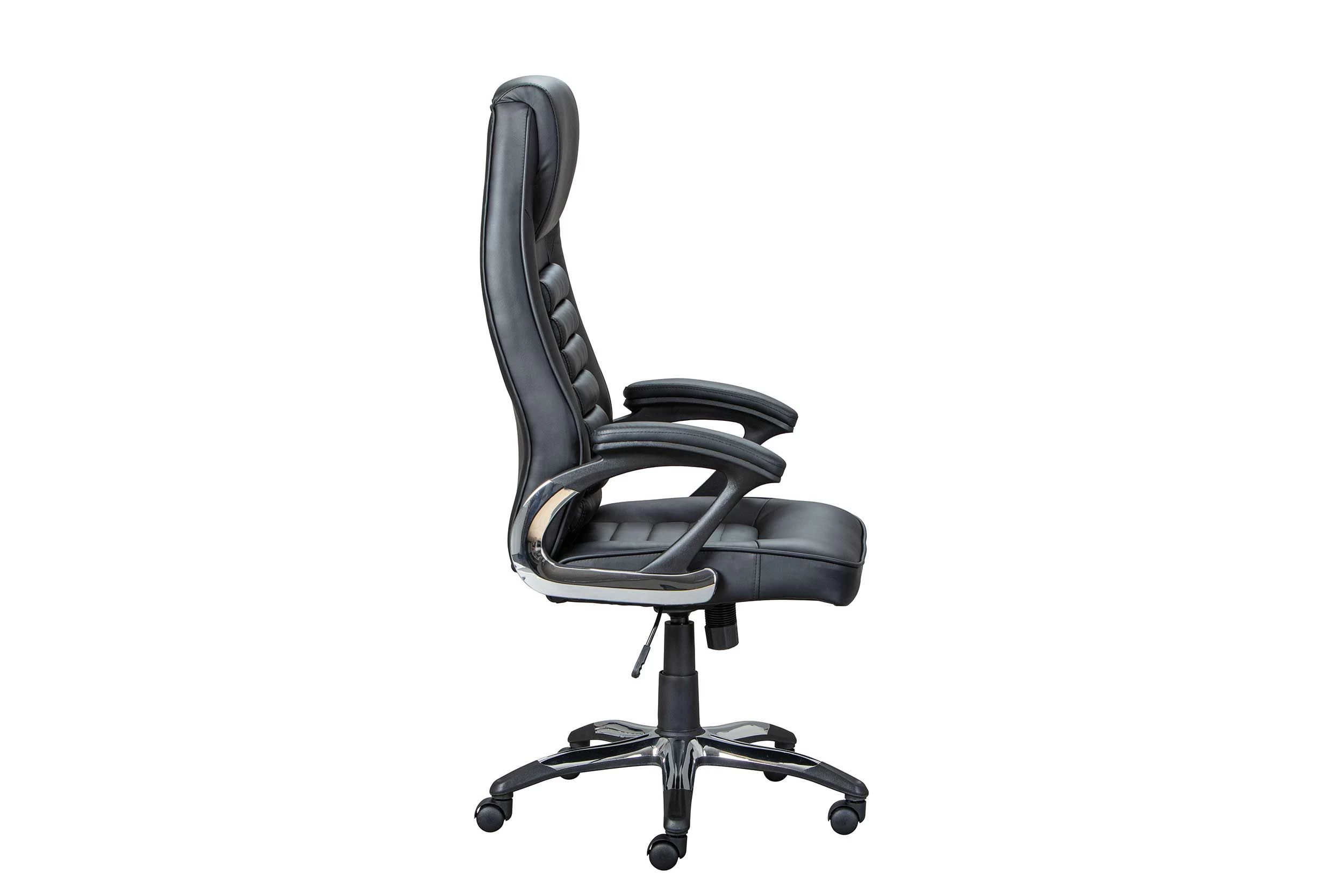 De Patroni bureaustoel straalt klasse uit dankzij de effen zwarte bekleding in kunstleer. Combineer deze stoel gemakkelijk in een kantoor of bij jouw thuis. De bureaustoel is voorzien van wieltjes en armleuningen. Je kan ook de zithoogte van de Patroni bureaustoel aanpassen naar wens.