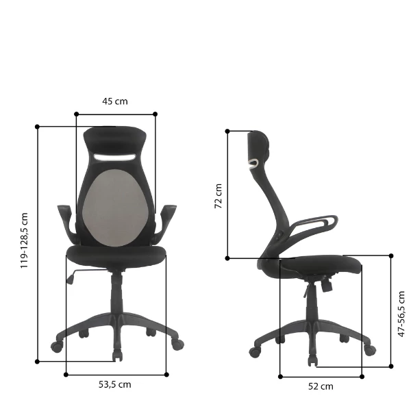 Deze bureaustoel is ideaal voor wie houdt van een futuristische stijl dankzij zijn unieke ontwerp. Deze bureaustoel scoort eveneens op vlak van comfort: De zithoogte is verstelbaar van 47 naar 56.5 cm, de armleuningen zijn opklapbaar, de hoofdsteun met schuimvulling is verstelbaar, er is een lendensteun en er is een gecentreerd kantelmechanisme waardoor zitting en rugleuning gelijktijdig kunnen kantelen. Ten slotte zorgen de wieltjes ervoor dat de stoel gemakkelijk te verplaatsen is. Leg een laatste hand aan uw bureauruimte met bureaustoel Thille!