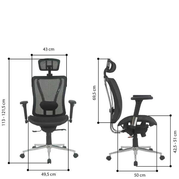 Deze bureaustoel is niet alleen een streling voor het oog maar ook nog eens hét toonbeeld van comfort. De hoogte is verstelbaar van 121 naar 130 cm, de armleuningen, hoofdsteun en lendensteun zijn eveneens allemaal verstelbaar en de rugleuning en zitting kunnen tegelijk gekanteld worden. Door de wieltjes is deze stoel gemakkelijk te verplaatsen. Deze stoel is geschikt voor zowel thuis als op kantoor. De maximale gebruiksduur bedraagt 8 uur per dag.