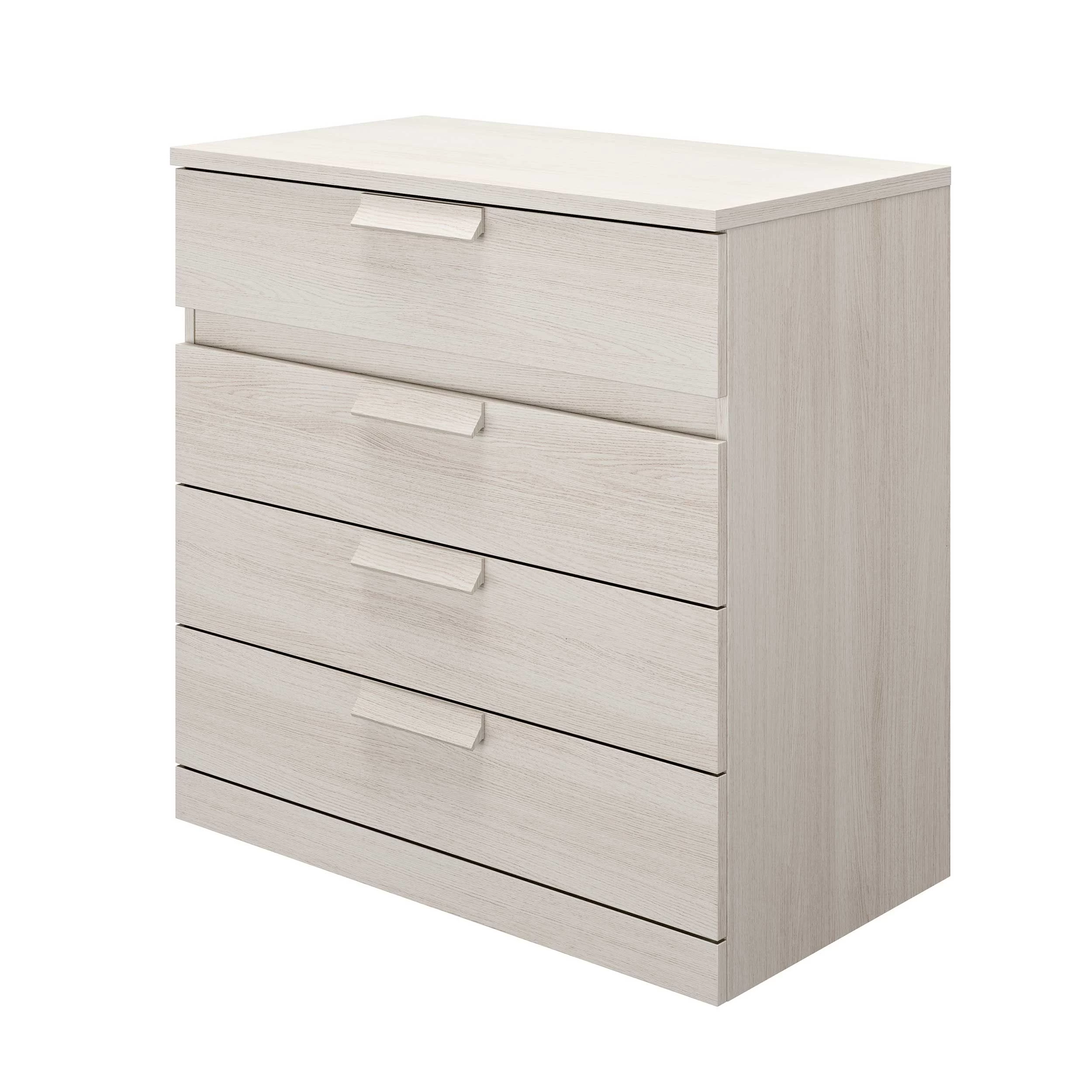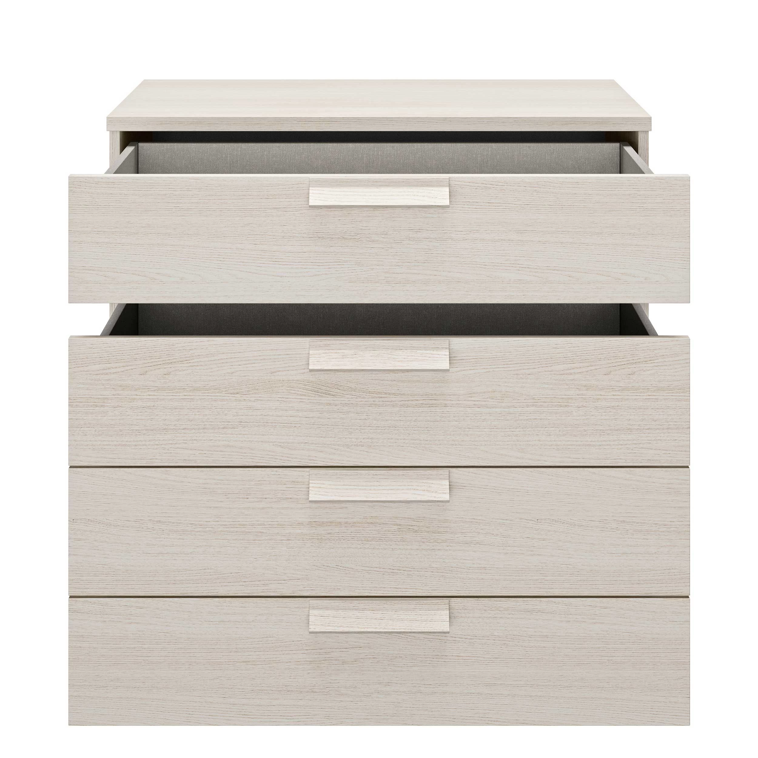 Deze hoge commode is uitgerust met 4 lades waarin je heel wat spullen een plaatsje kunt geven. De commode is afgewerkt in gebleekte es.