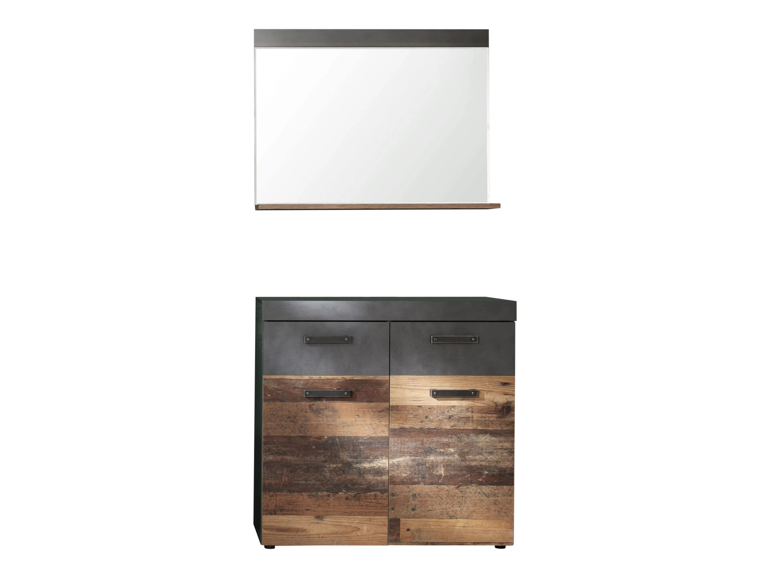 Maak kennis met de Indy-combinatie. Stijlvol en veelzijdig, deze onderhoudsvriendelijke set bestaat uit een ladekast en spiegel in ‘Old Wood’-front. De grafietgrijze romp in ‘Matera’-stijl voegt een modern tintje toe en de antiekkleurige handgrepen maken de look compleet. Met een robuust oppervlak en een garantie van 6 maanden is deze set een slimme keuze. Hij is gemaakt in Europa en FSC-gecertificeerd en voldoet aan de veiligheidsnormen.