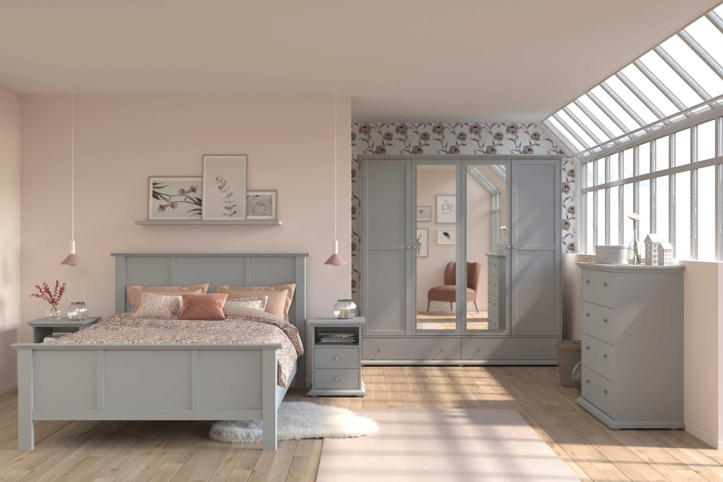 De Morgane-collectie overtuigt iedereen dankzij haar charmante, landelijke uitstraling. Haar lichtgrijze kleur zorgt voor een fris accent in je slaapkamer terwijl het rustgevende karakter van deze collectie bewaard wordt. Alle meubelen zijn gemaakt van spaanplaat.