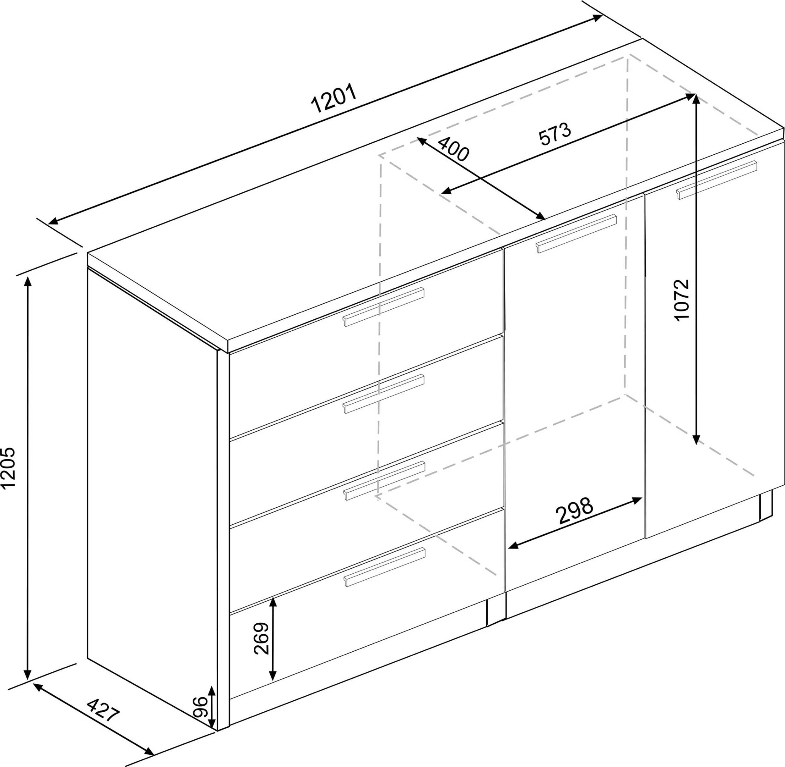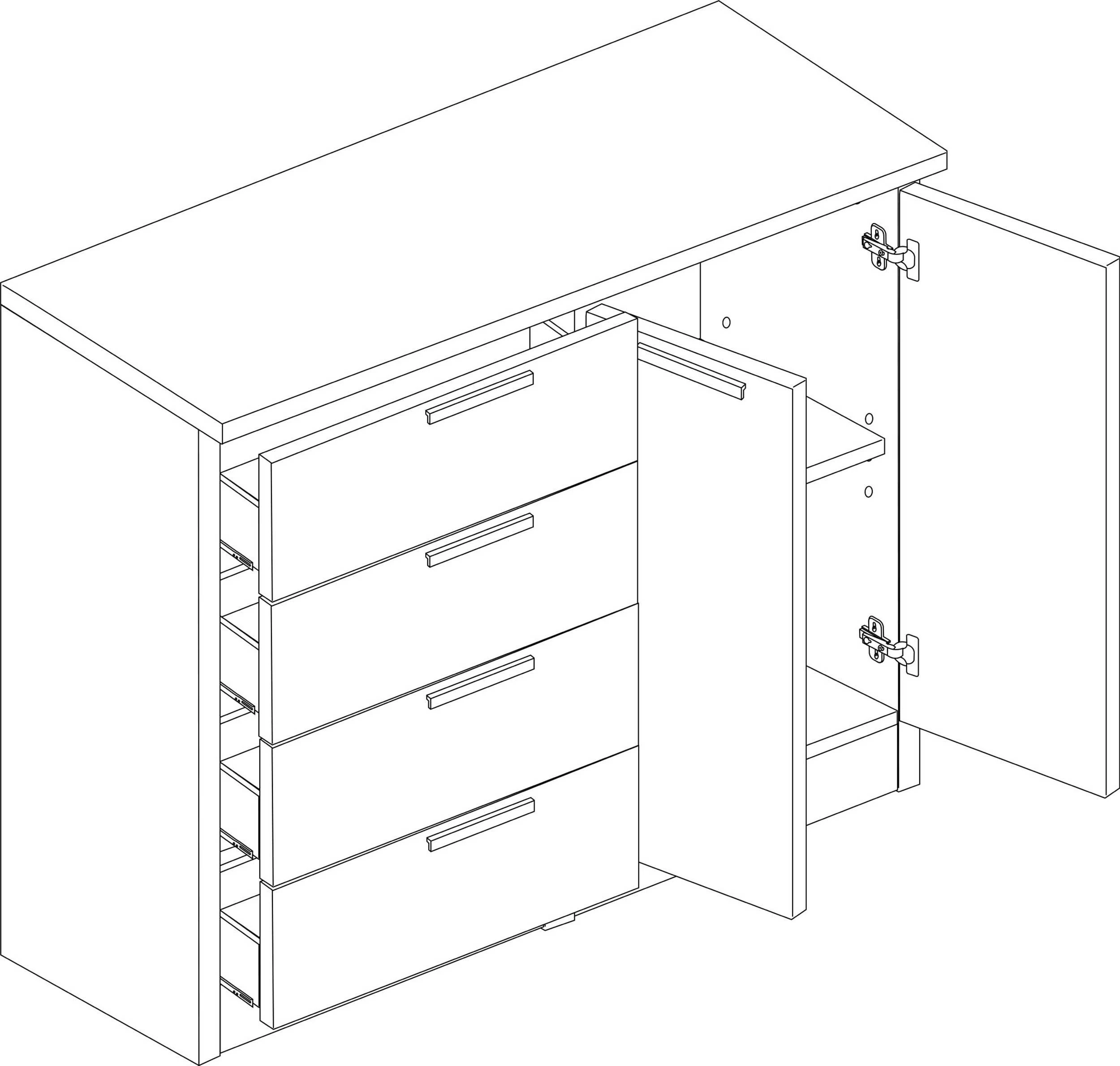 De meubelen van de Ramos-collectie integreren zich dankzij hun neutrale design in elke slaapkamer. In deze commode met 4 laden, 2 deuren en een legplank beschik je over heel wat plaats om t-shirts, accessoires en meer op te bergen.