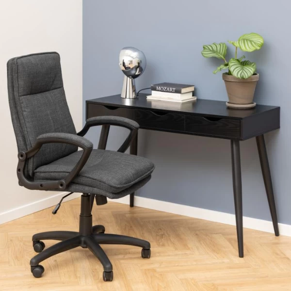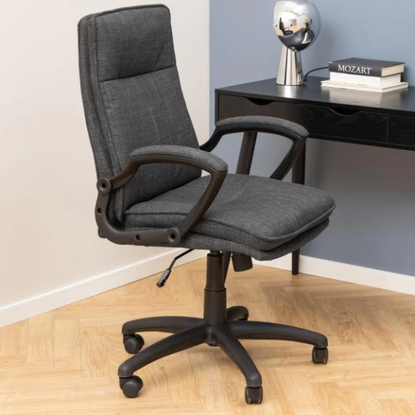 Op zoek naar een comfortabele bureaustoel om je kantoor te vervolledigen? Gun je kantoor een upgrade met een directiestoel! Deze Justin directiestoel is bekleed met een donkergrijze stof en is uitgerust met armleuningen en remwielen. De stoel is verstelbaar in hoogte (zithoogte van 48 tot 57,5cm) en heeft ook een verstelbare rugleuning. De bureaustoel Justin bestaat ook in andere uitvoeringen. Bekijk al onze bureaustoelen op onze website.