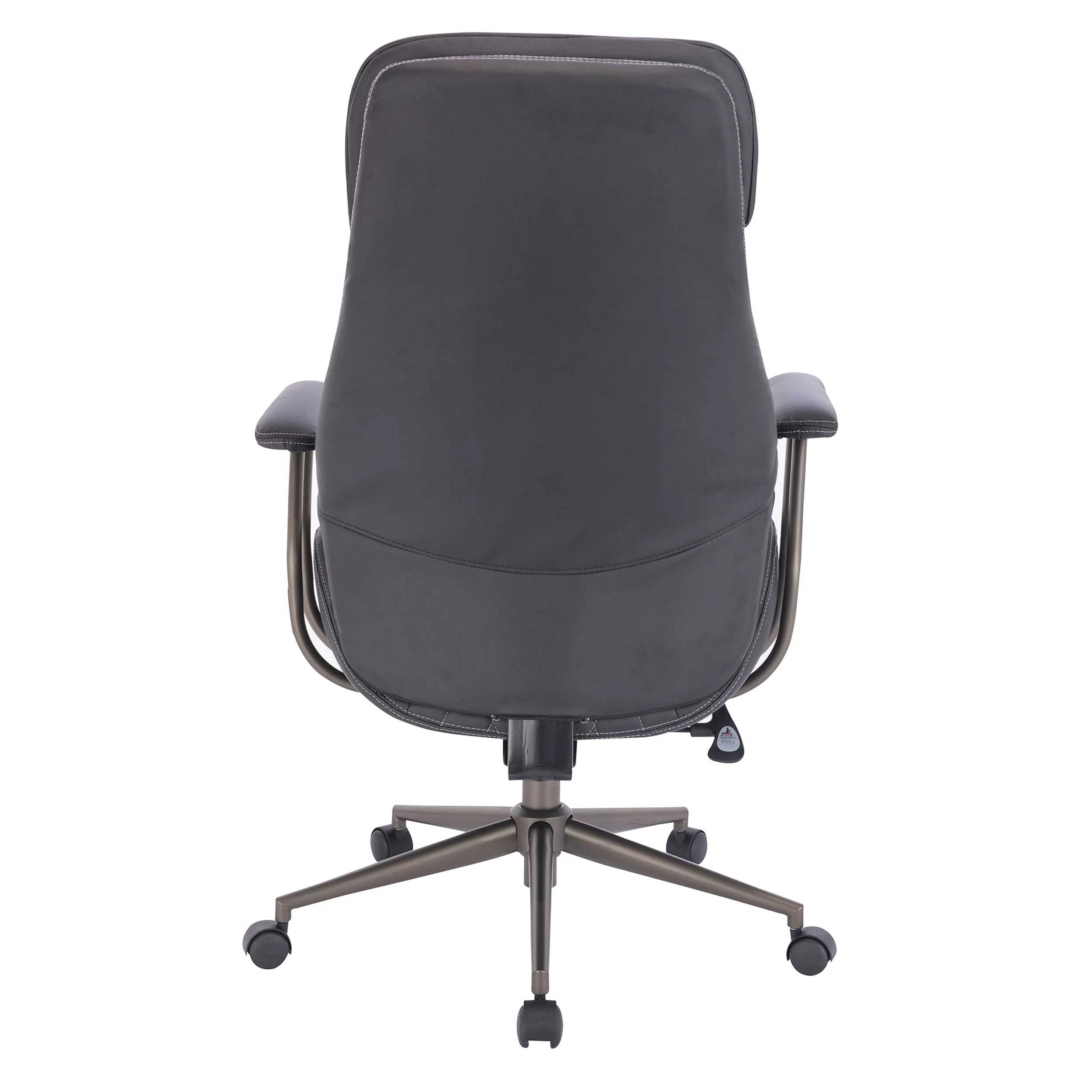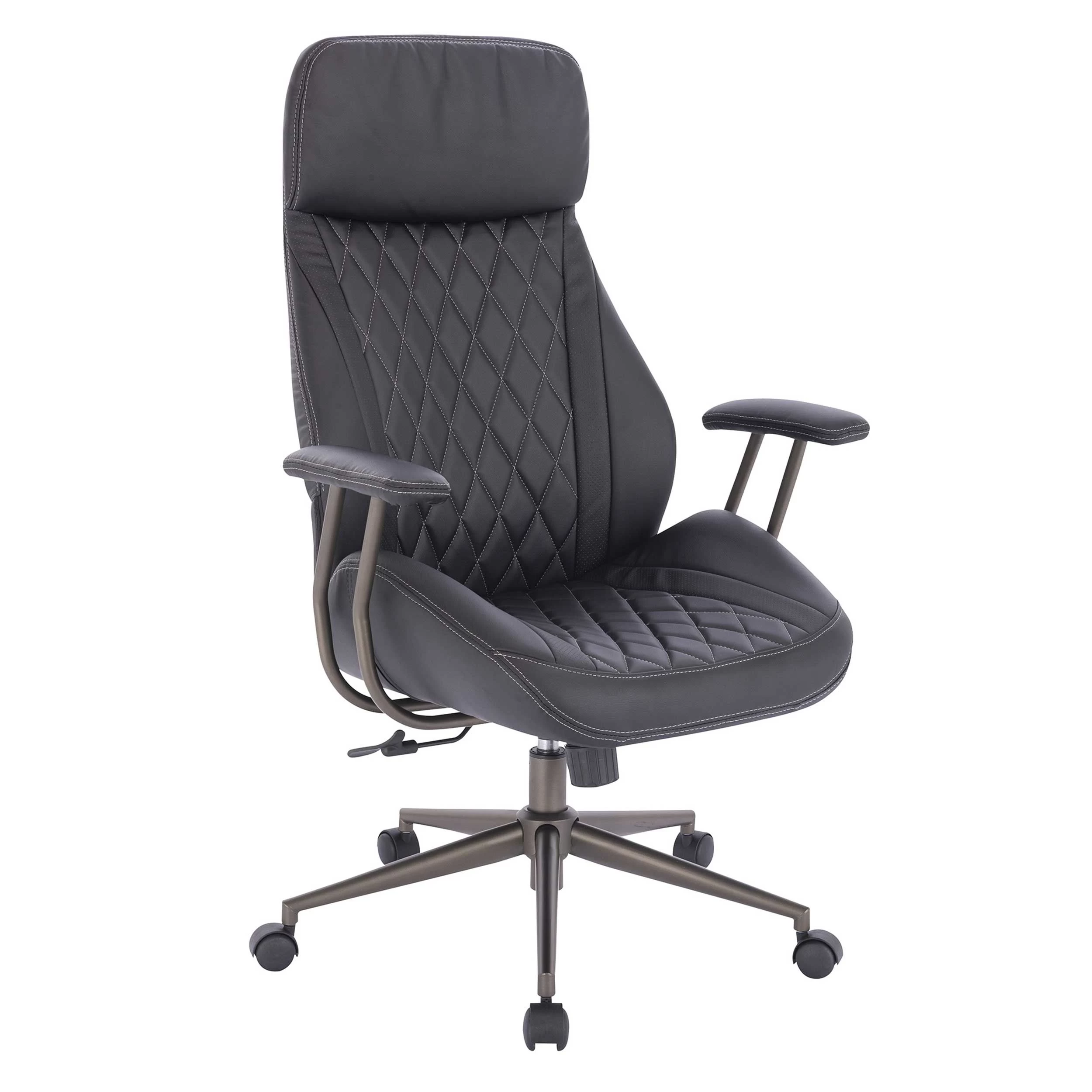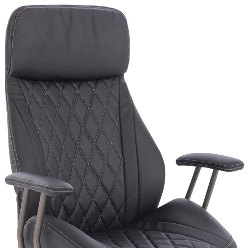 Deze zwarte bureaustoel met armleuningen biedt het nodige comfort voor elke werkdag. De zachte zitting en rugleuning in PU zorgen bovendien voor een zakelijke en elegante uitstraling in je kantoor. Wat deze directiestoel speciaal maakt zijn de stiksels die doorlopen over de volledige zitting en leuning. Extra pluspunten: de stoel is in hoogte verstelbaar en kan je makkelijk verschuiven dankzij de metalen voet met vijf wieltjes.