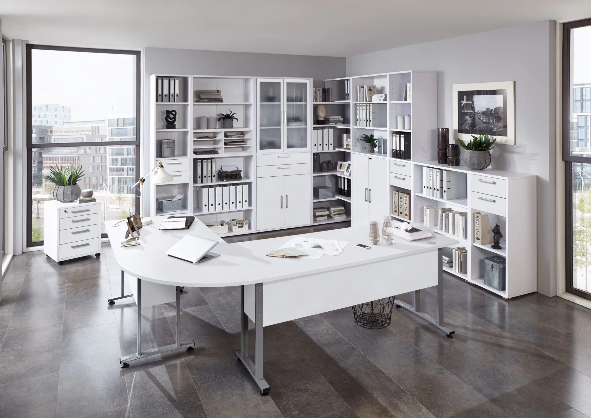 FMD Hoekbureau Gabi 120×160 – Hoogglans Wit