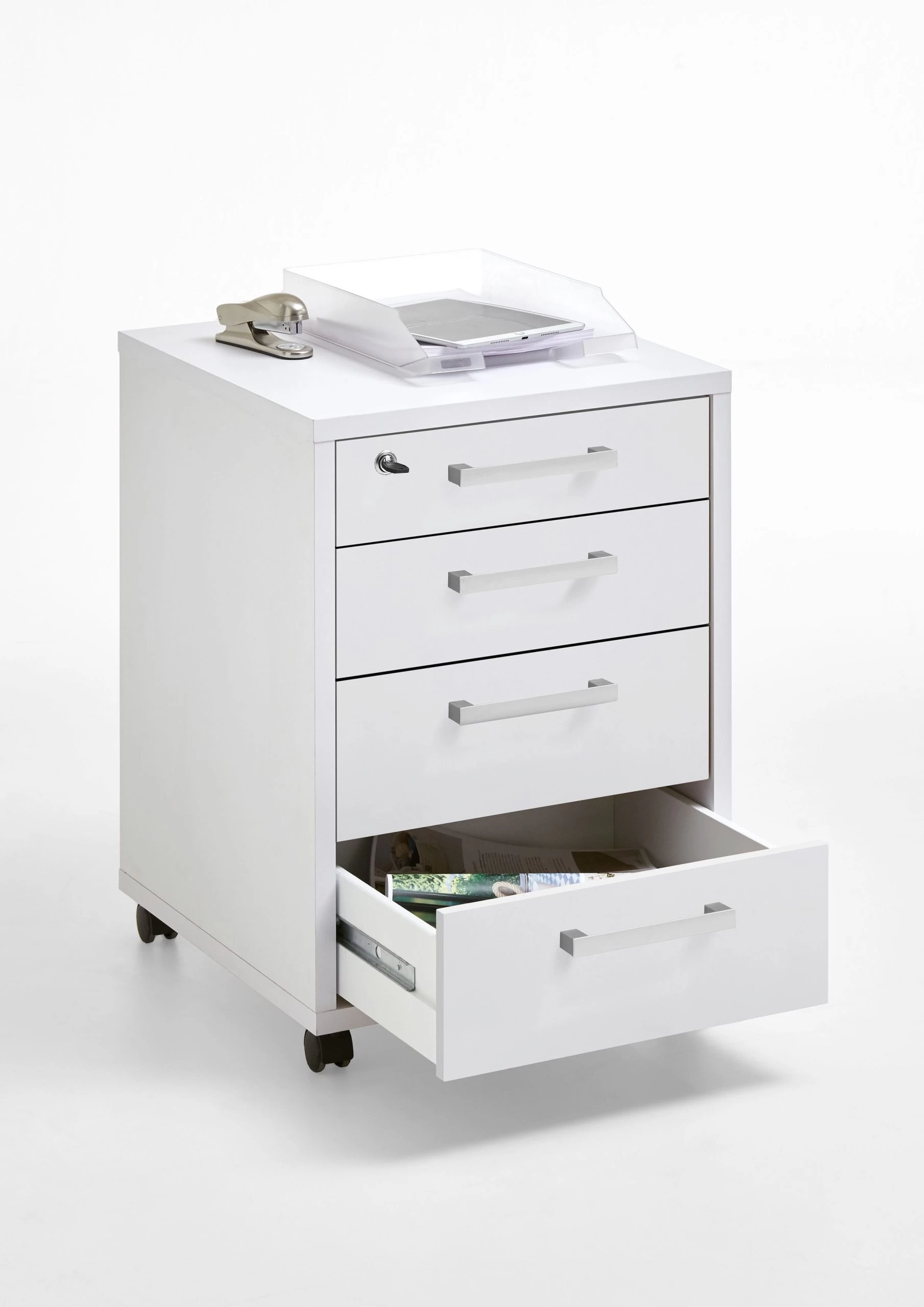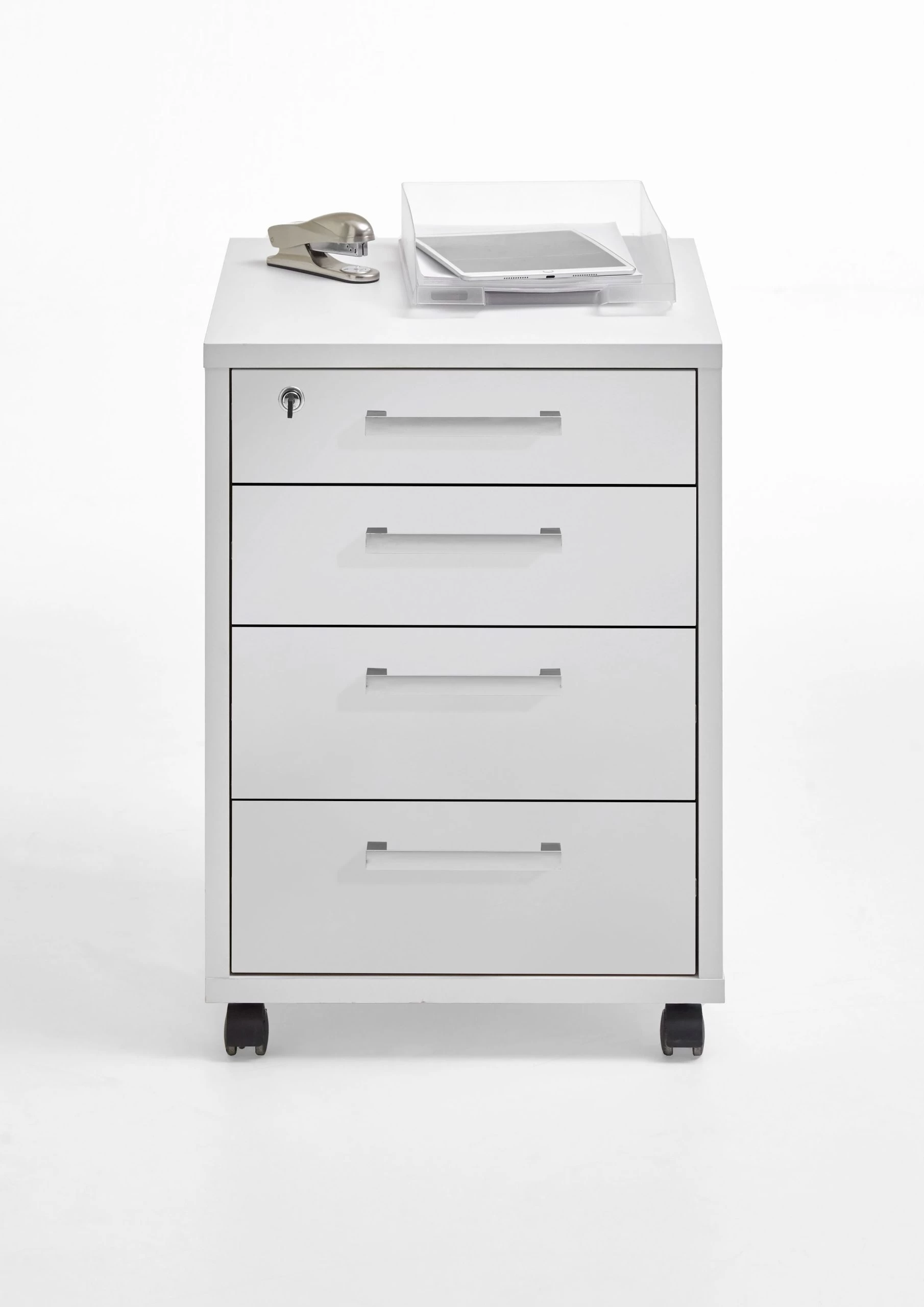 Ladeblok Gabi – hoogglans wit, uitgerust met 4 handige lades en wieltjes.