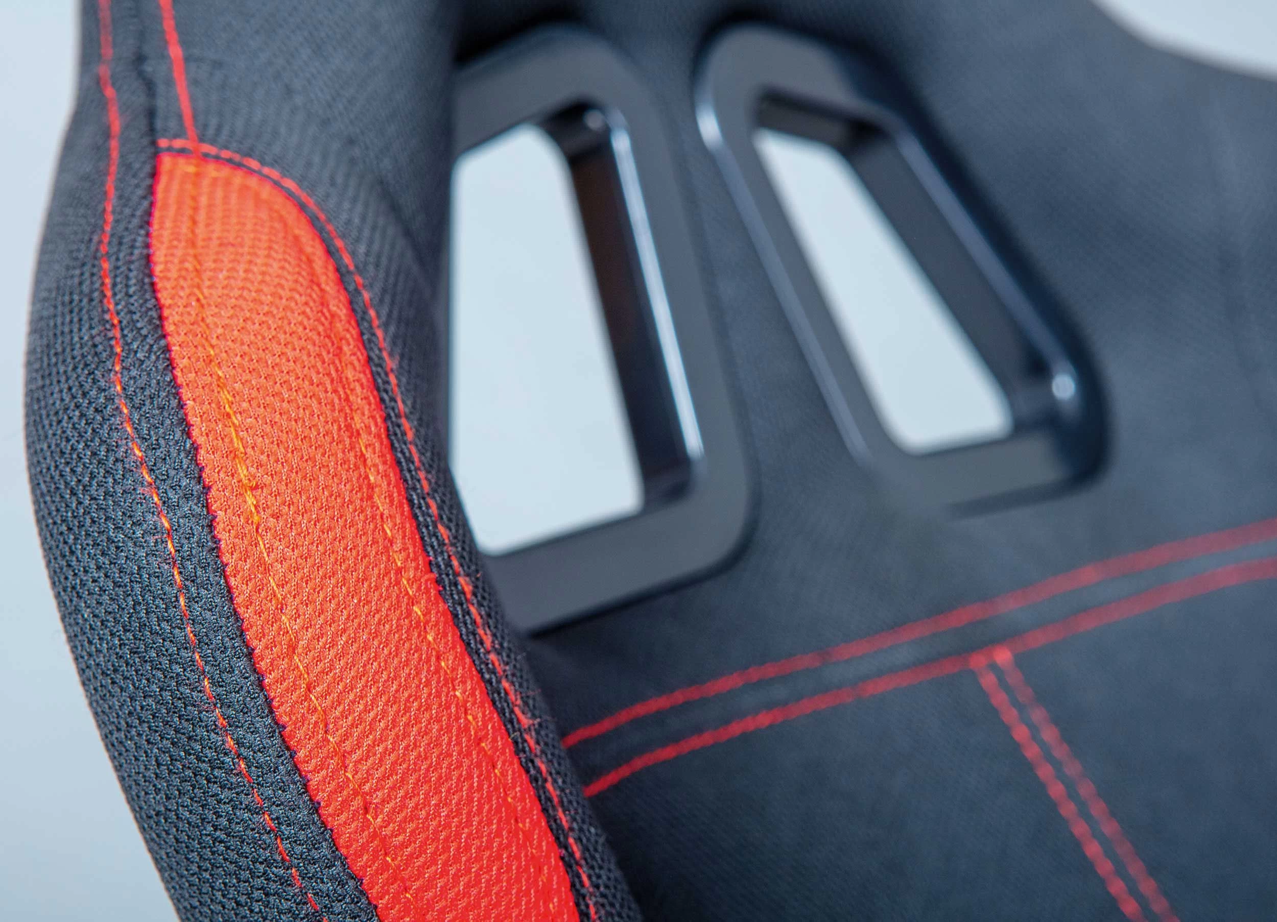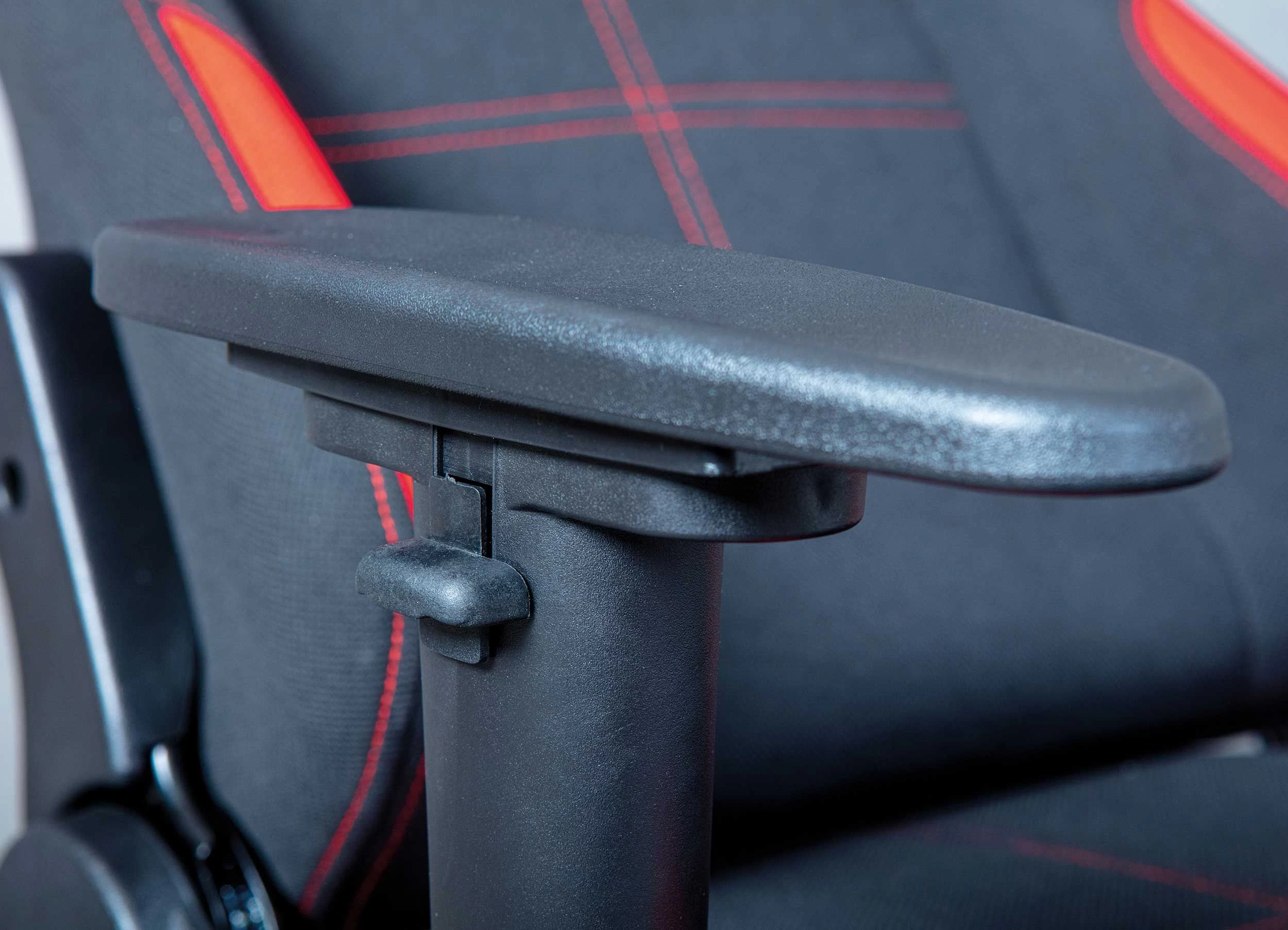 Ergonomische gamestoel Frasso uit kunststof met comfortabele zitting in nylon, die ideaal is voor langdurig zitten. Het contrasterende, gemaasde kleurenconcept doet denken aan een modern race-design. Leuk extraatje: de armsteunen zijn in de hoogte verstelbaar en kunnen de schouders ontlasten.