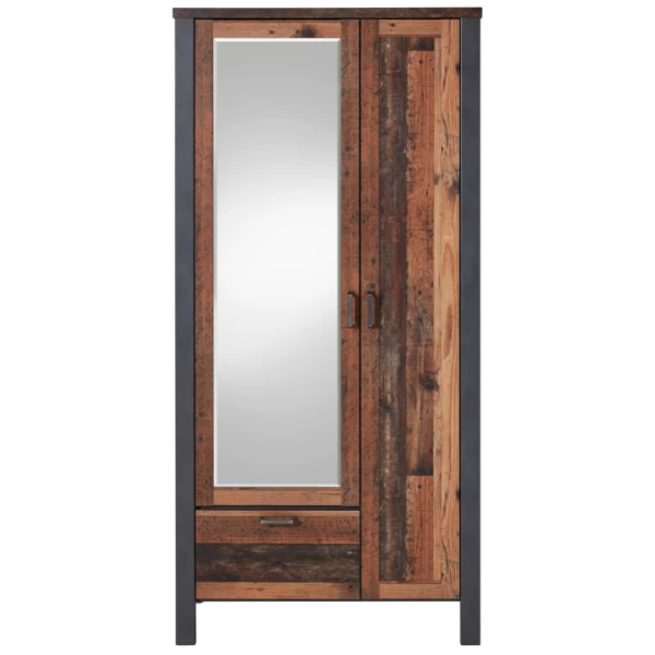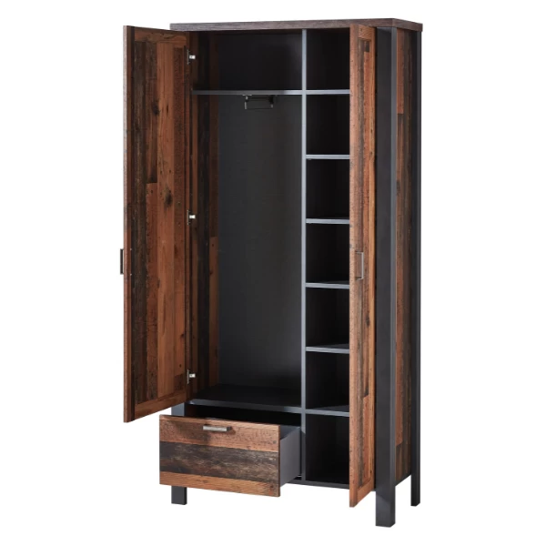 Garderobekast Carthago 94cm Met 2 Deuren & 1 Lade – Oude Eik/antraciet