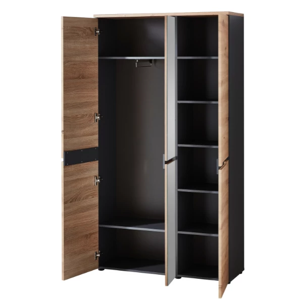 Garderobekast Medina Met Spiegel 3 Deuren – Eik/antraciet