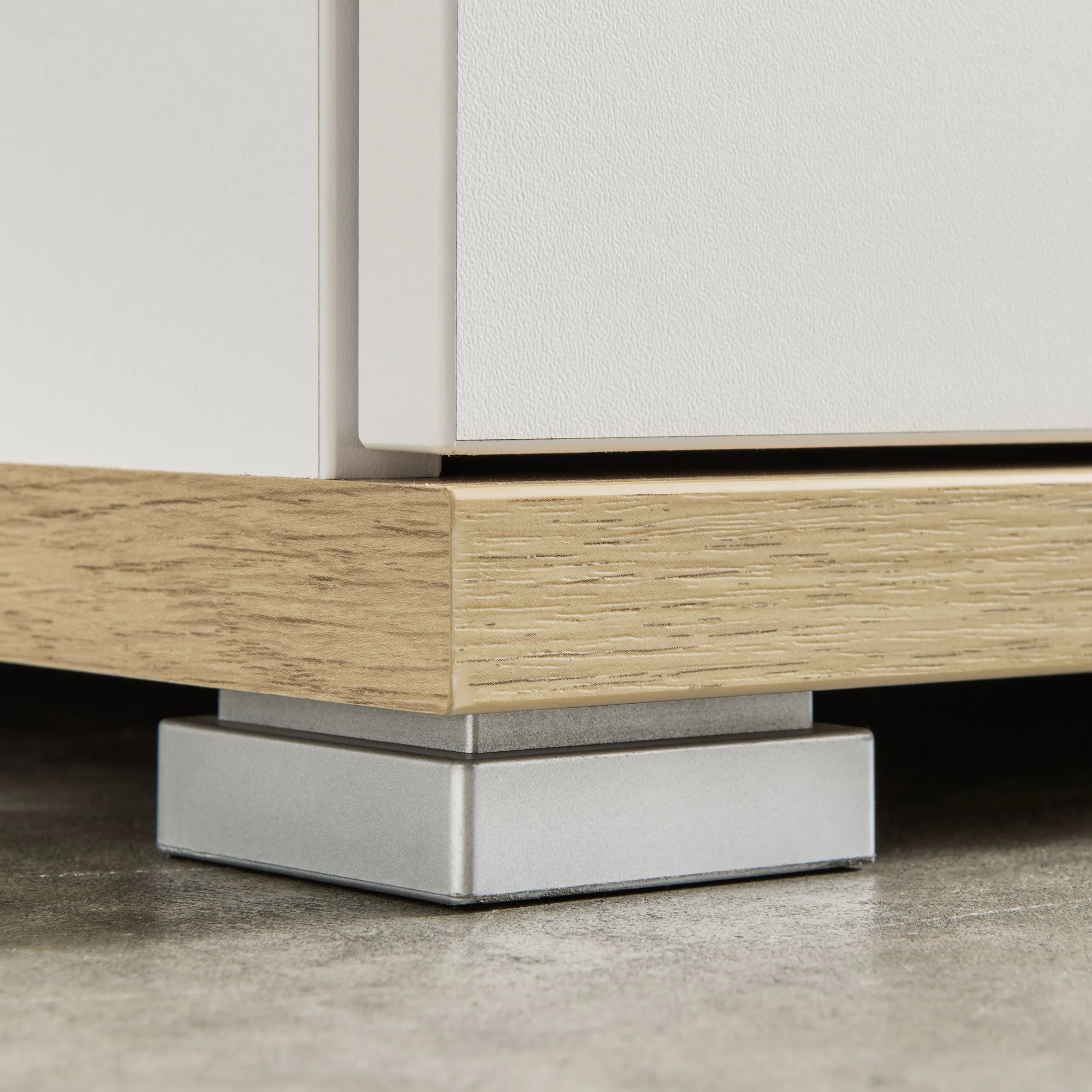 Garderobekast Stoffel met 2 deuren in wit met accenten in eikdecor. Meubel gemaakt uit spaanplaat en afgewerkt met een laagje melamine.