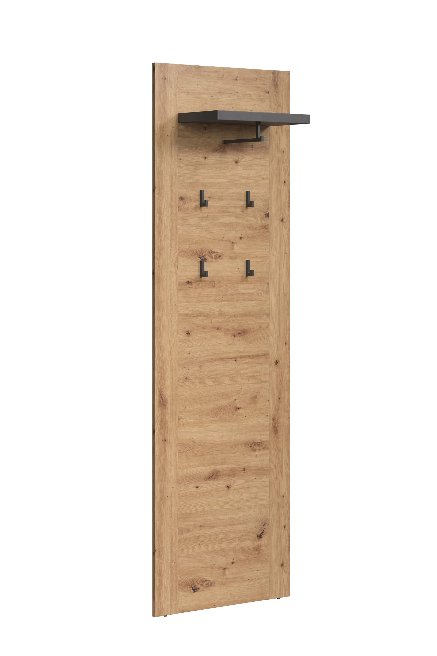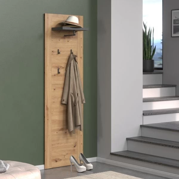 Transformeer je gang of hal in een georganiseerde en stijlvolle ruimte met ons wandpaneel uit de Follow-serie. Met afmetingen van 62 x 26 x 199 centimeter biedt dit paneel de perfecte oplossing voor het ophangen van jassen, tassen en sleutels, terwijl het ook een handige bovenste plank heeft voor decoratieve items.