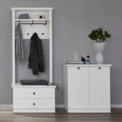 Garderobeset Brandson Baxter | Bank, Paneel En Bijzetkast | Wit