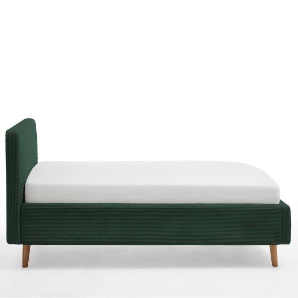 Op zoek naar een trendy bed voor in je slaapkamer? Dan zijn de bedden Madras echt iets voor jou. Dit bed heeft een bekleding in donkergroen ribfluweel. Het ontwerp met afgeronde hoeken en de houten pootjes zorgen voor een leuke, Scandinavische retrolook. Dit bed heeft een ligoppervlak van 140x200cm. De matras en lattenbodem zijn niet inbegrepen. De bedden Madras bestaan in verschillende kleuren en uitvoeringen. Ontdek de volledige collectie op onze website.