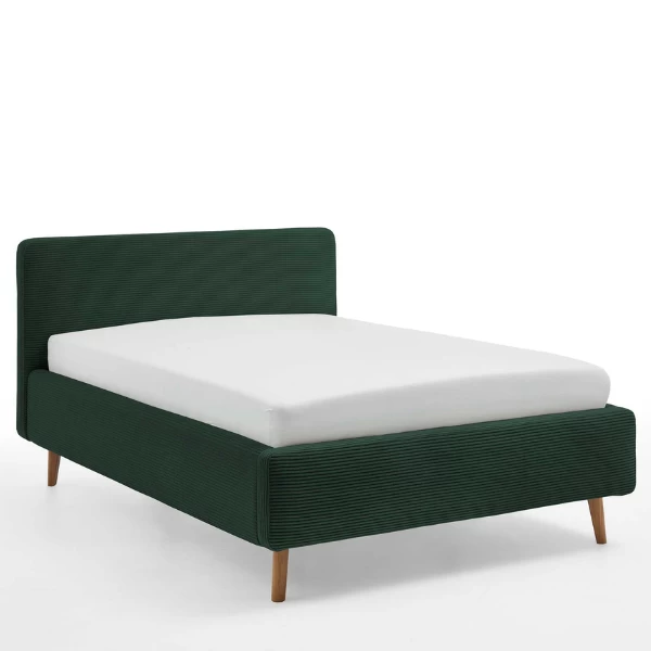 Gestoffeerd Bed Madras 140x200cm Ribfluweel – Donkergroen