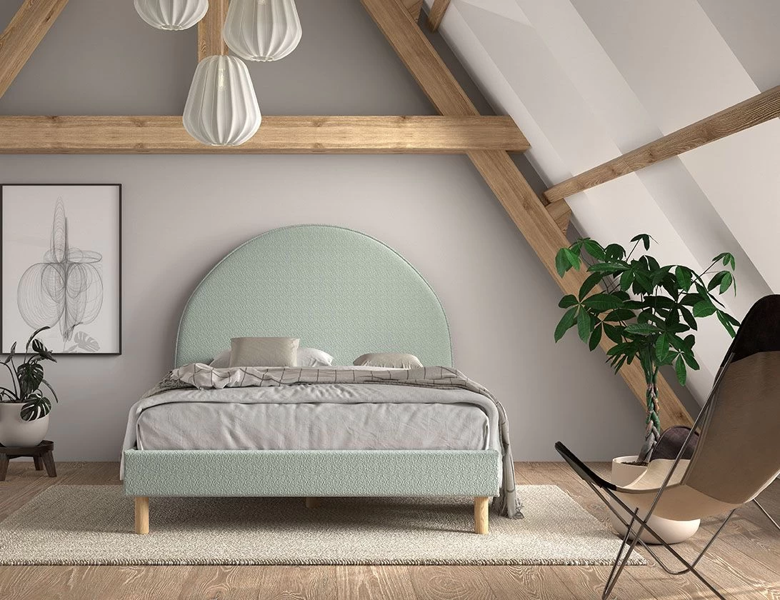 Gestoffeerd Bed Maeva 140x200cm Met Twee Nachttafeltjes – Groene Bouclé Stof