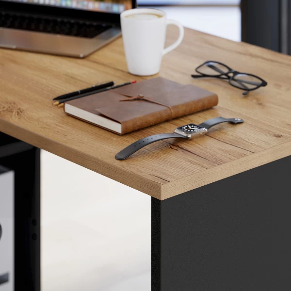 Hoekbureau Miguel Met Opbergruimte – Antraciet/eik
