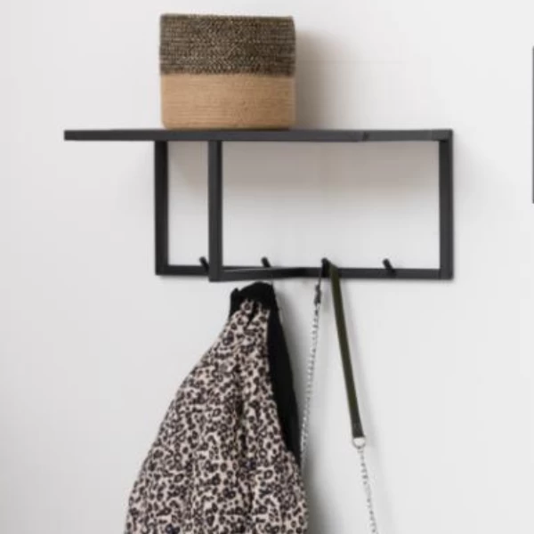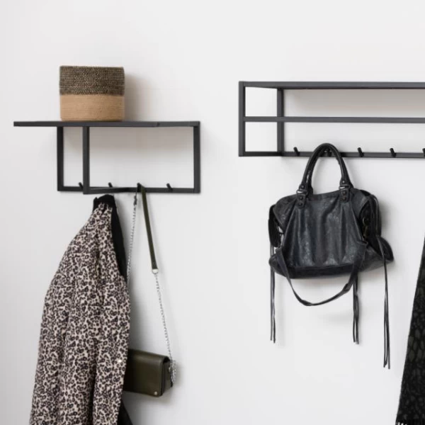 Met de uitgebreide Seaford-collectie tover je in een handomdraai je huis om tot een industrieel paradijs. Zwart en bruin, dé industriële kleuren, zijn volop aanwezig in de meubels uit deze collectie. Deze kapstok heeft bijvoorbeeld een frame uit zwart gepoedercoat metaal en een hoedenplank in zwart esdecor. Kapstok Seaford is 50 cm bij 28 cm en is uitgerust met een hoedenplank en 4 ophanghaakjes.