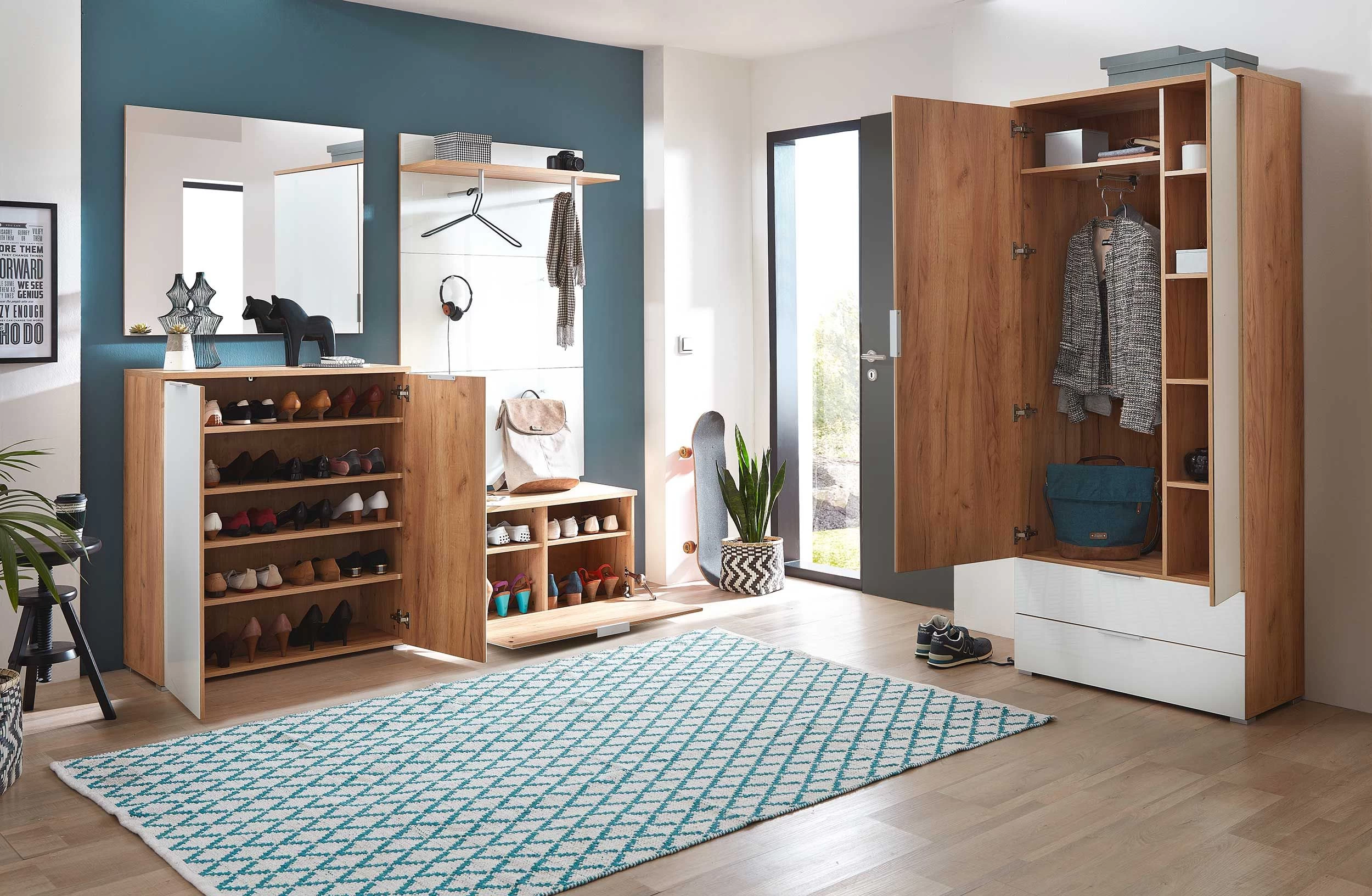 Deze Tille-collectie heeft alles wat een modern-Scandinavische inrichting zou moeten hebben. Het Navarra eikdecor in combinatie met het tijdloze wit van de fronten in robuust en schokbestendig veiligheidsglas geeft de look die jij zoekt! Het meubel is uitgerust met een ruime hoedenplank, een kledingroede en vier jashaken. Daardoor heb je zowel ruimte om je mantels, hoofddeksels als je favoriete accessoires of te hangen of weg te leggen. De stevige ABS-randen en de coating van melaminehars maken het meubel compleet. Ontdek de rest van deze reeks en ook de andere collecties van Germania bij Emob.