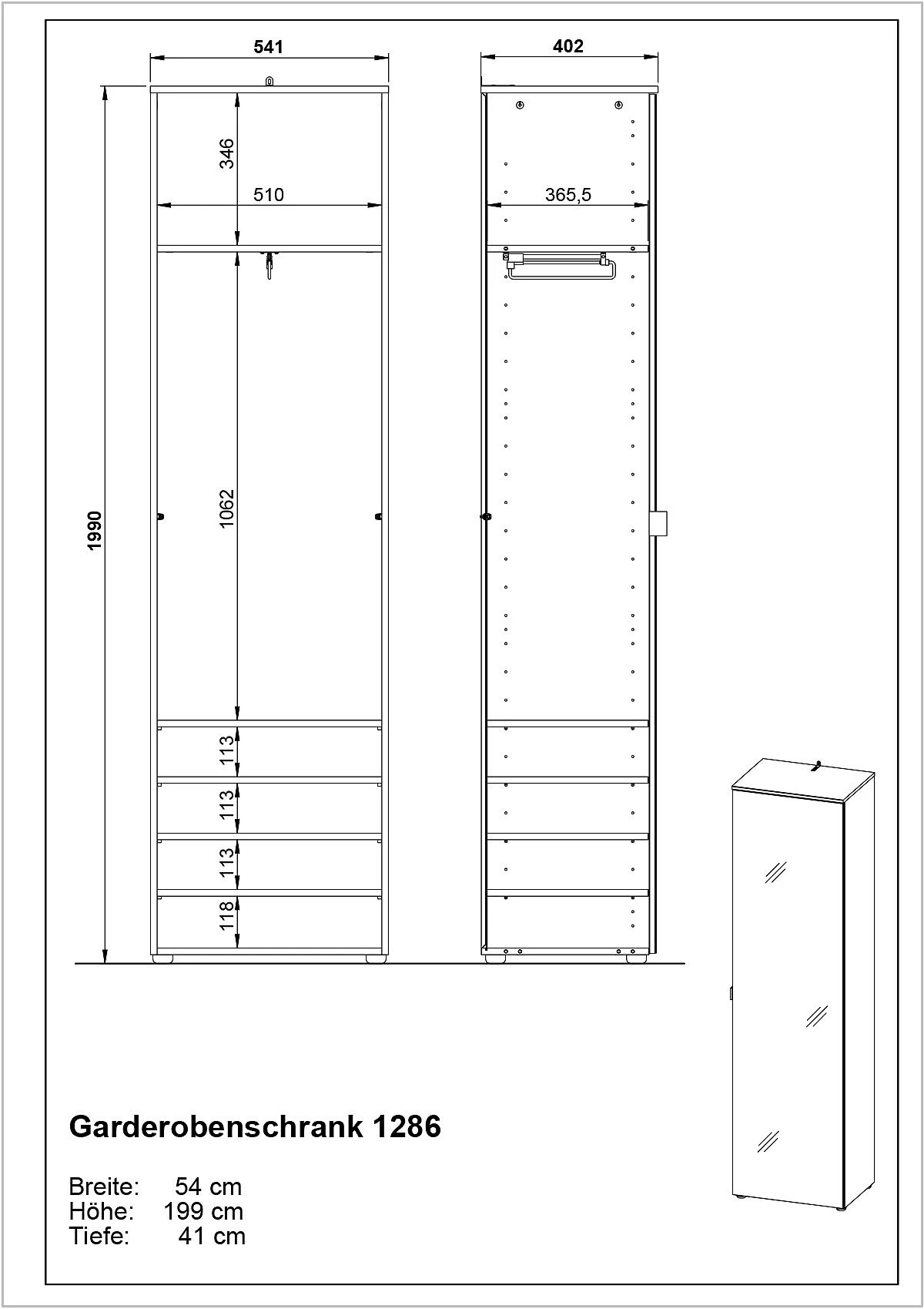 Kledingkast Bianca | 54 X 41 X 199 Cm | Spiegeldeur | Wit