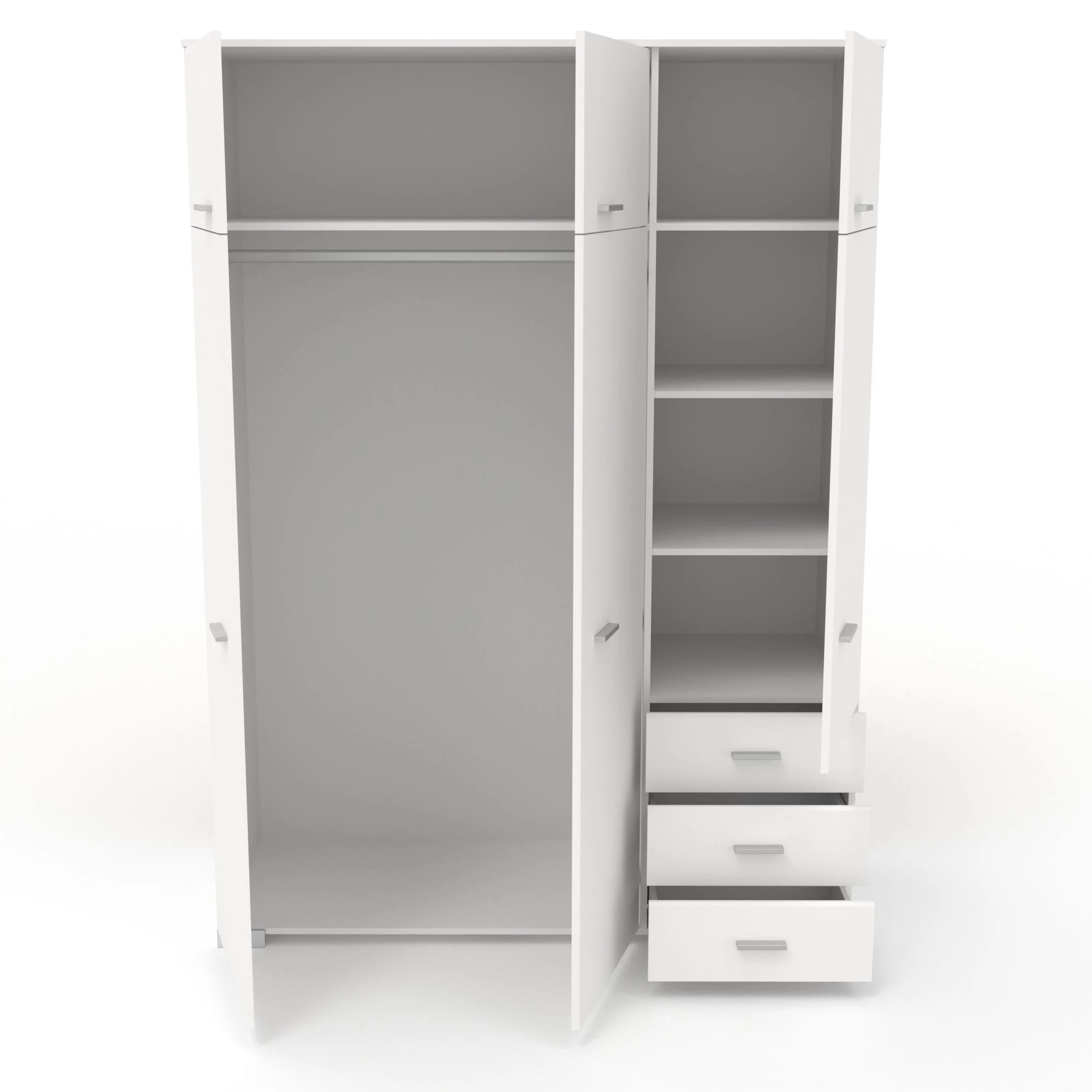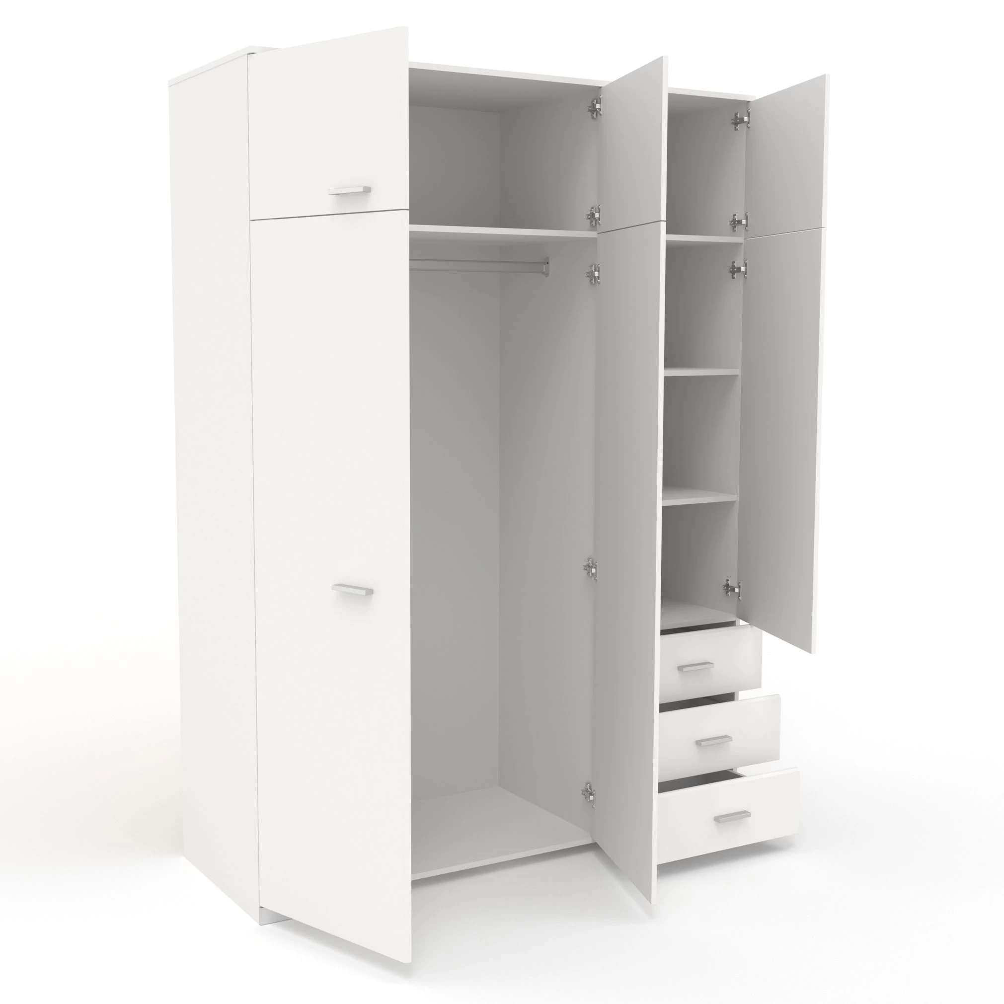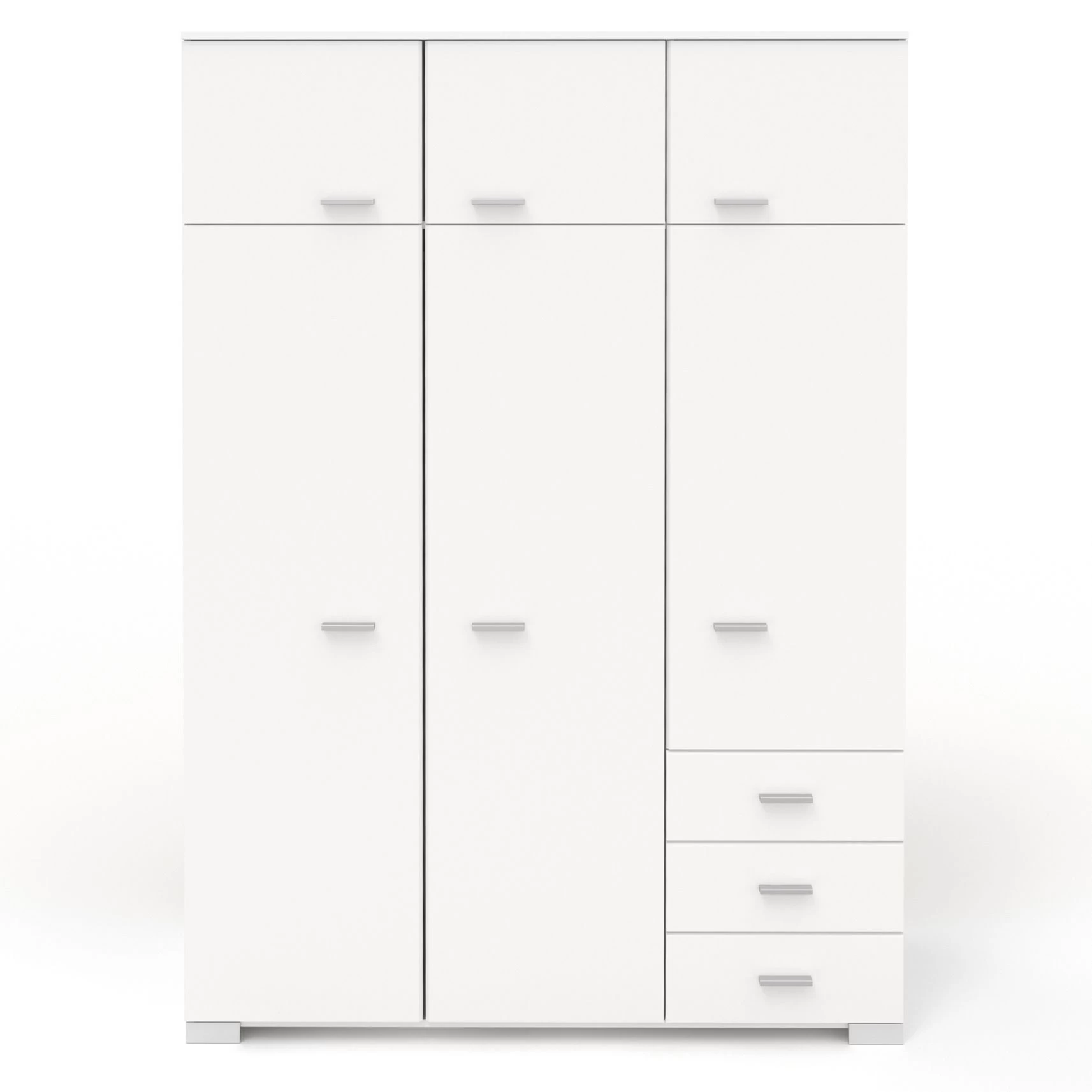 Deze witte kledingkast van de Galaxy-reeks heeft heel wat praktische eigenschappen. Zo is ze uitgerust met 6 deuren, 3 lades, een kledingroede, een grote en 3 kleinere legplanken. Deze 6-deurskast is vervaardigd uit hoogwaardige spaanplaat en wordt al snel onmisbaar in jouw slaapkamer! Neem zeker ook even de tijd om onze andere modellen en kleuren te ontdekken.