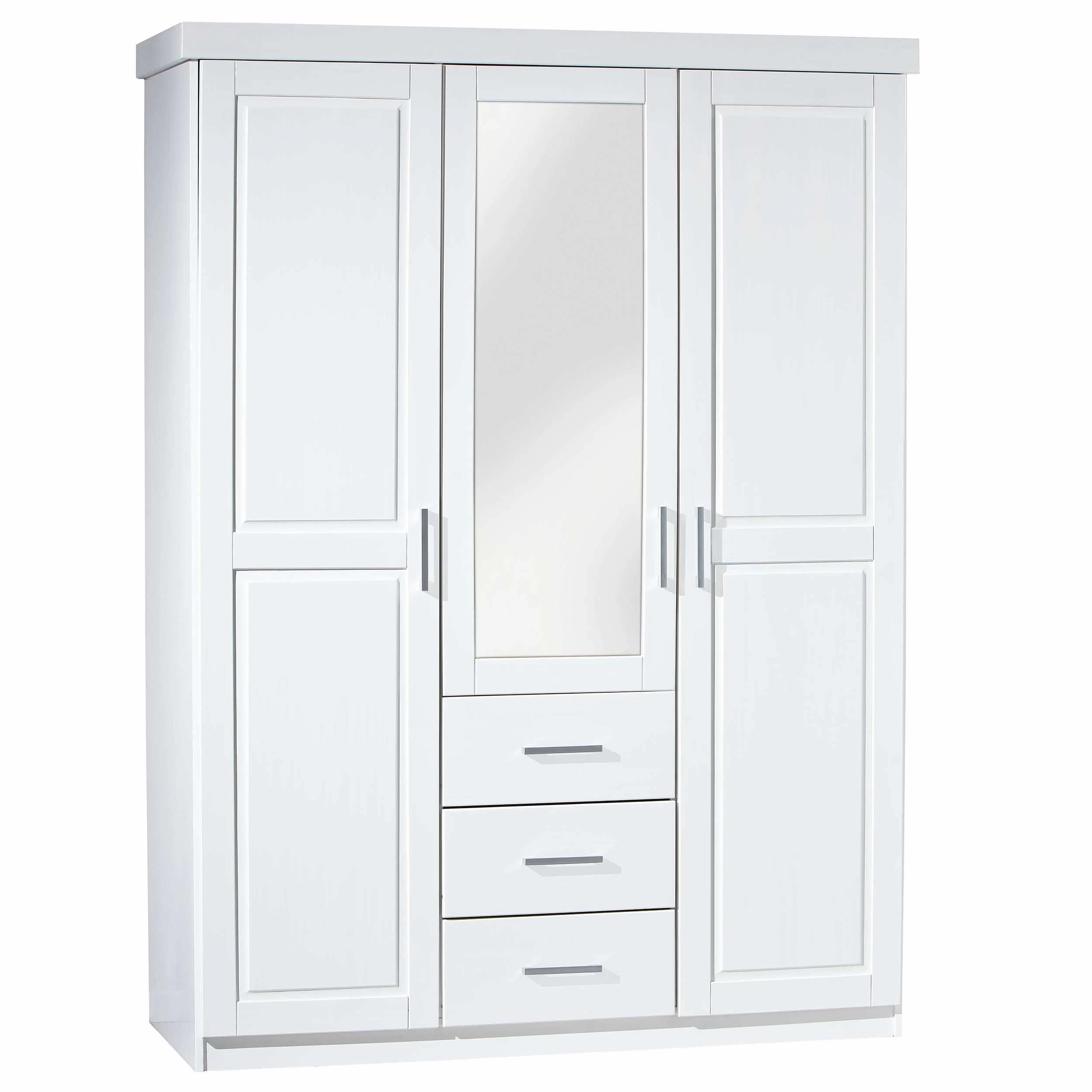 Kledingkast Geraldo is de perfecte kledingkast voor hem en voor haar. Die kledingroede hoeven jullie vanaf nu niet meer te delen, achter de linkse en rechte deur vinden jullie namelijk een identieke indeling en dus evenveel plaats voor jullie kleren. Naast een roede beschik je elk nog over een legplank bovenaan. Enkel de middelste deur kan nog voor discussie zorgen met 3 compartimenten. De deur is uitgerust met een handige spiegel. Eronder vind je nog eens 3 laden.