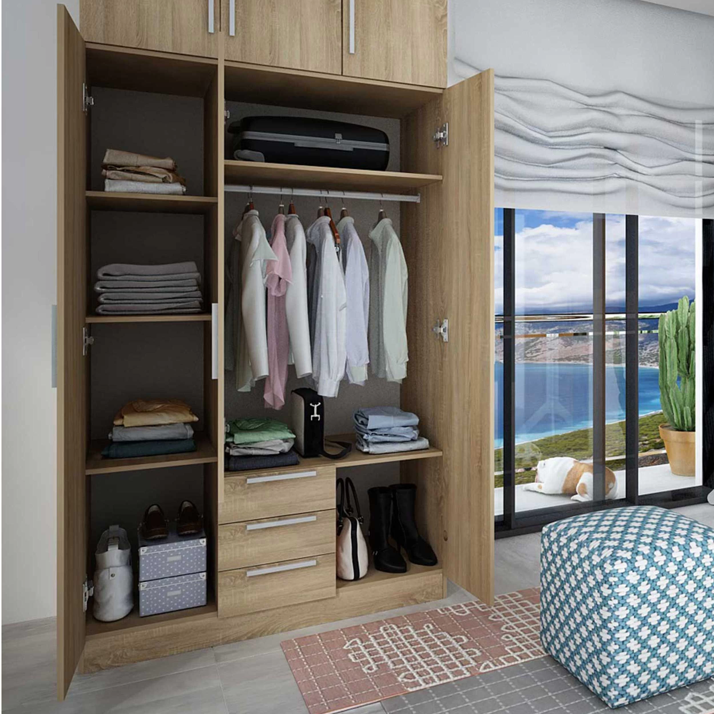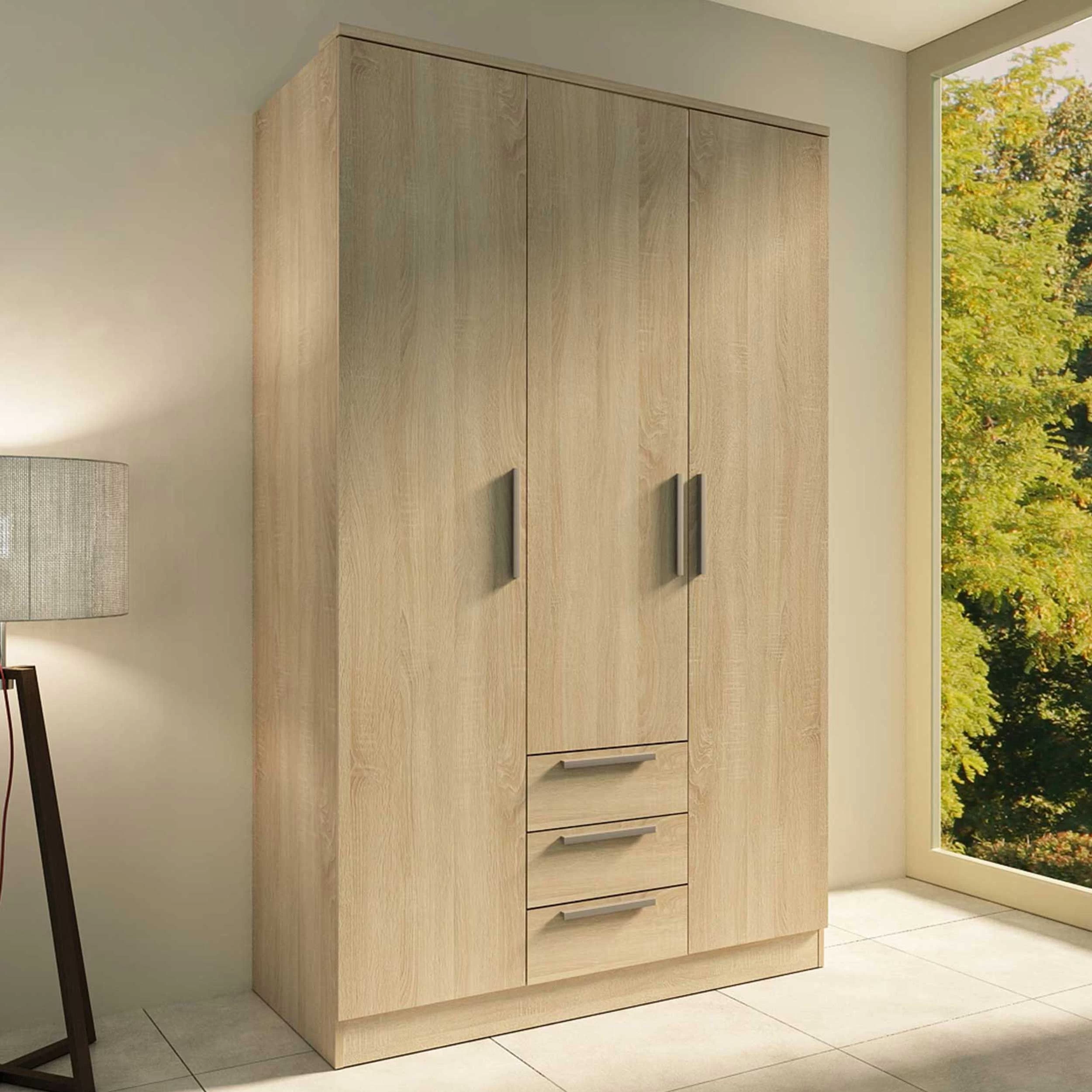 dankzij hun neutrale design in elke slaapkamer. Deze 3-deurskledingkast