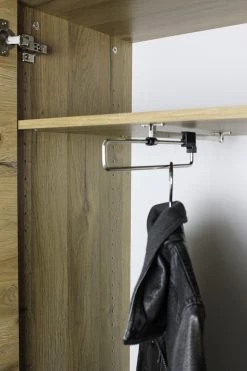 Deze versie is gemaakt van spaanplaat en is deels afgewerkt in eikdecor. Kledingkast Spike is ook beschikbaar in andere afwerkingen.