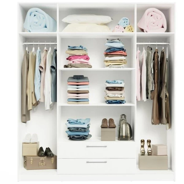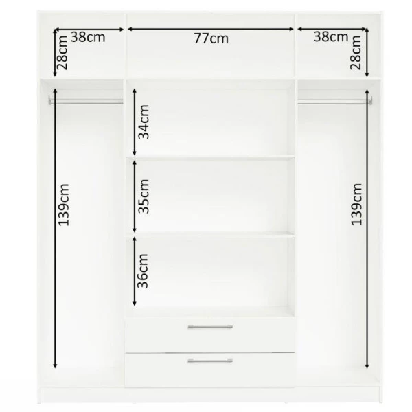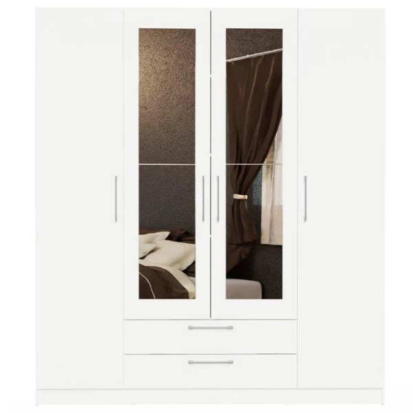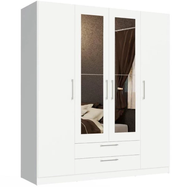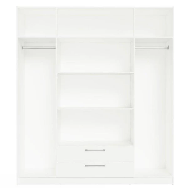 Kleerkast Rhea, 4 Draaideuren, 5 Legplanken, 2 Kledingroedes En 2 Lades-wit