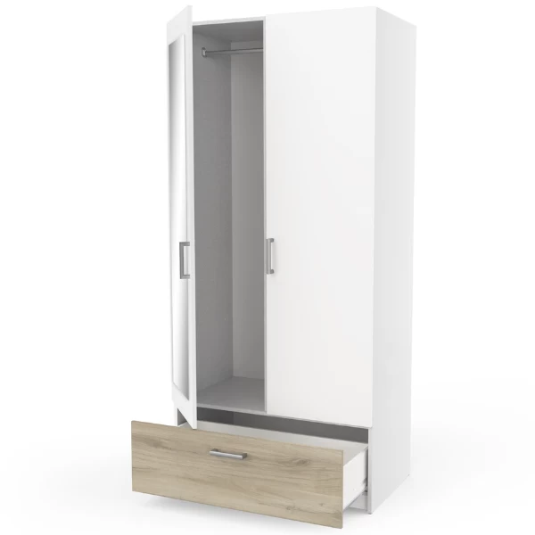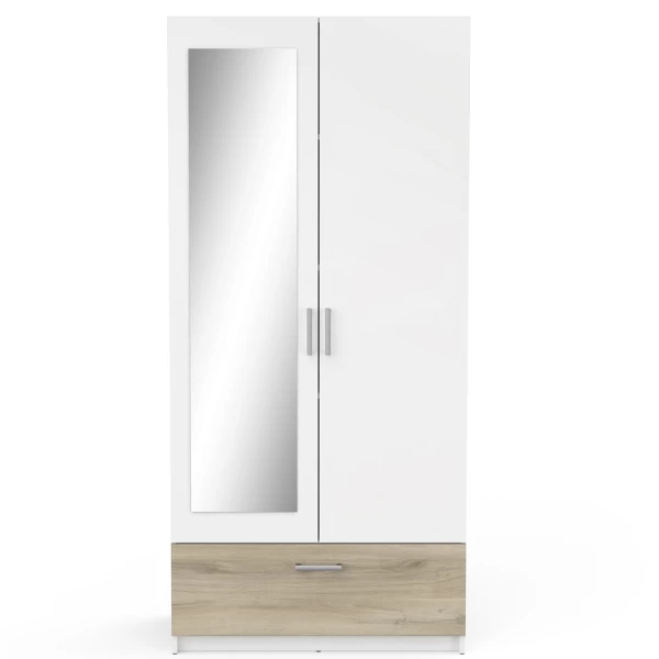 Kleerkast Ryan 2 Draaideuren, 3 Legplanken, 1 Kledingroede En 1 Lade-Kronberg Eik/mat Wit