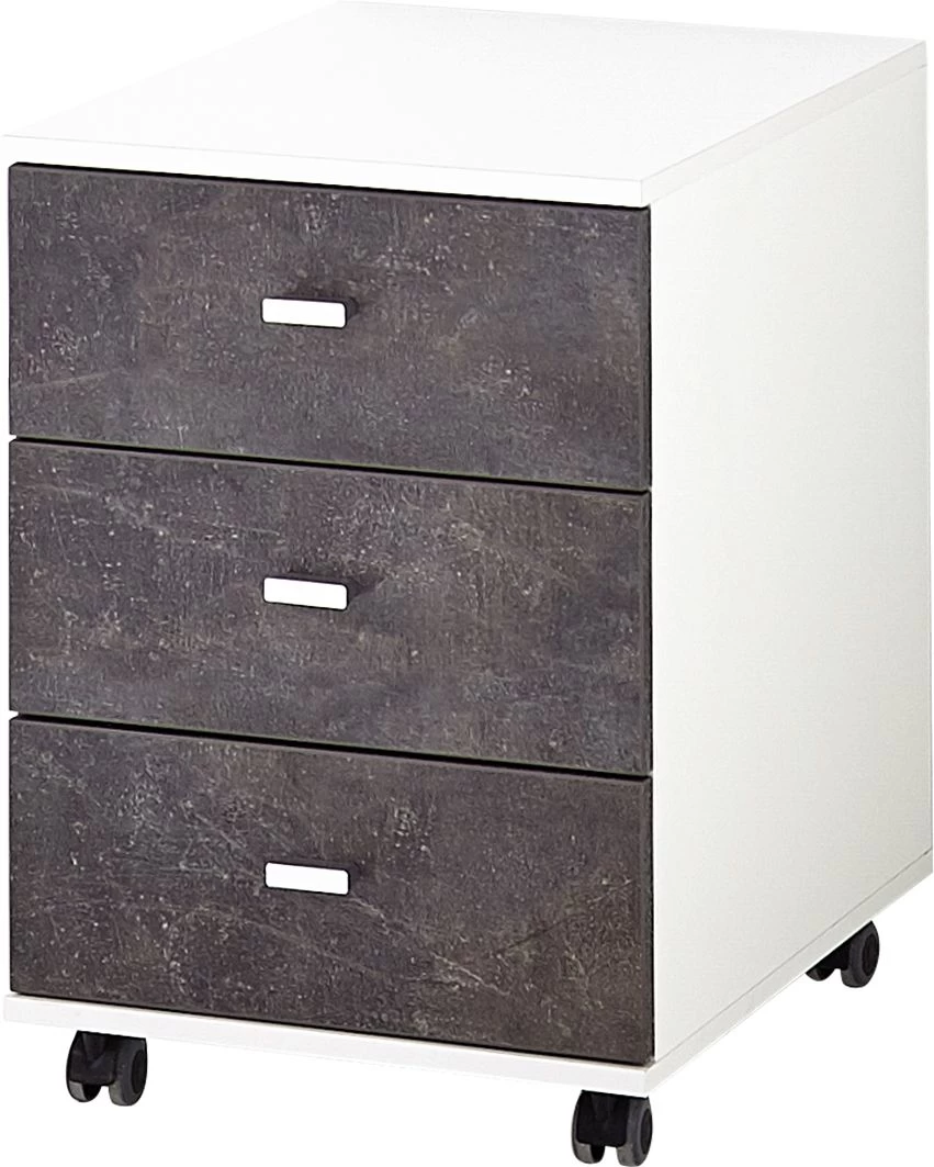 Ladeblok Aldo in kleurencombinatie wit met lades in basaltdecor, uitgerust met 3 lades, metalen handgrepen en wieltjes.