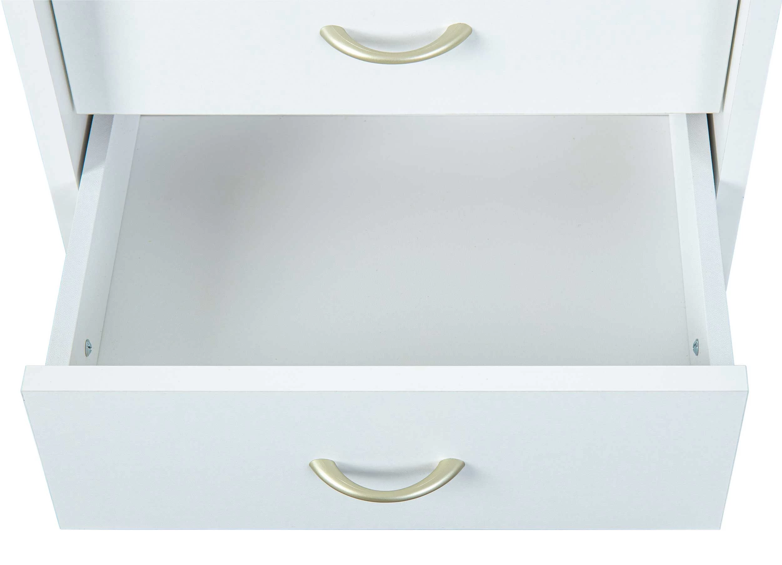 Ladeblok Podence op wieltjes in wit met 4 lades, met handgrepen in grijs aluminium.