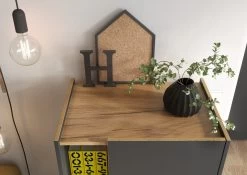 Ladeblok Trend heeft door zijn rechte lijnen en uitgesneden handgrepen een strakke en moderne stijl. Het meubel past perfect binnen een minimalistisch interieur waar stijl en functie op de voorgrond treden zonder te veel poespas. De zwarte kleur straalt klasse uit. De kast heeft 1 lade en 1 draaideur die een soft close-systeem hebben waardoor deze geruisloos gesloten kunnen worden. De lade heeft een stijlvolle linnenlook aan de zijkant. Achter de draaideur bevindt zich nog een legplank. Het kastje heeft 4 wielen onderaan zodat deze gemakkelijk verplaatst kan worden. Het Ladeblokje is perfect te combineren met bureau Trend en biedt extra bergruimte. Bekijk ook de andere meubels van de trend collectie op onze website.